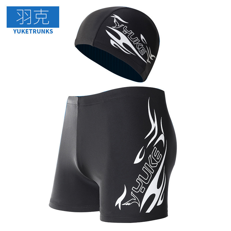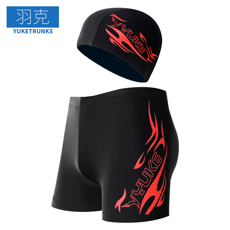 남성용 사각 수영복 성인 수영복 대형 수영복 수영모 세트 불꽃 수영 반바지 남성용 속건 패션