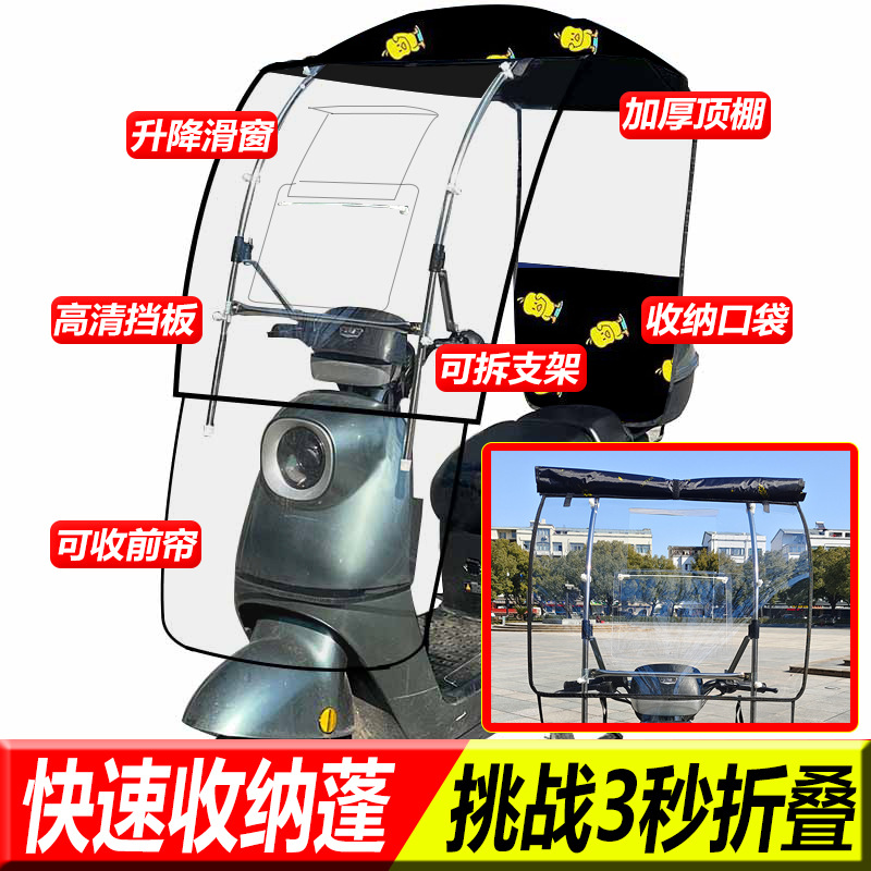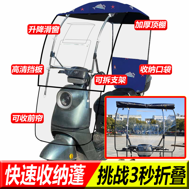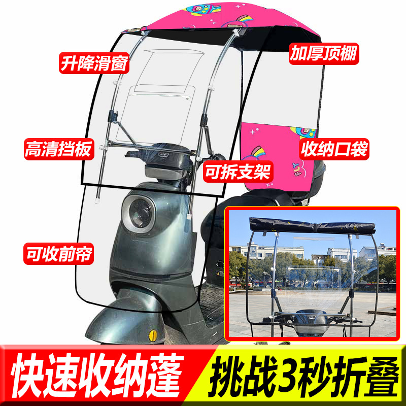 접이식 새로운 전기 자동차 캐노피 배터리 오토바이 방풍 방풍 태양 방지 개폐식 차양 캐노피스토어 가기