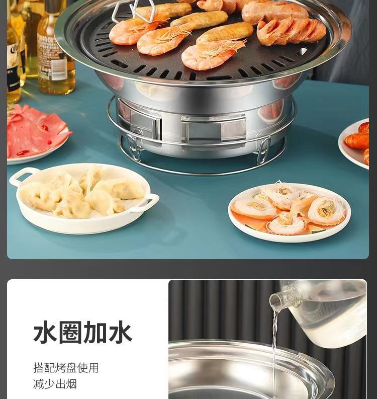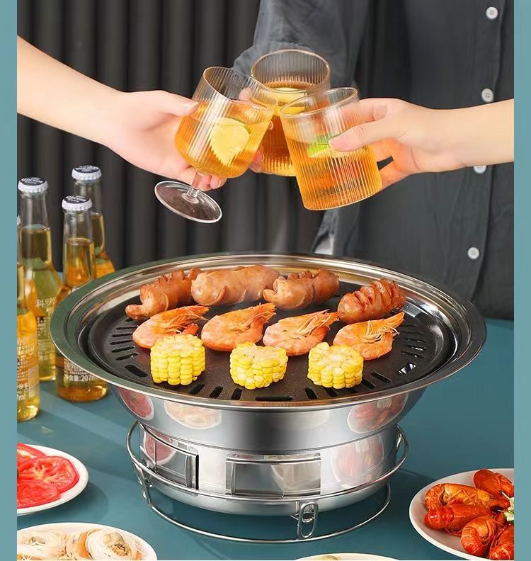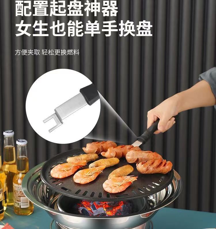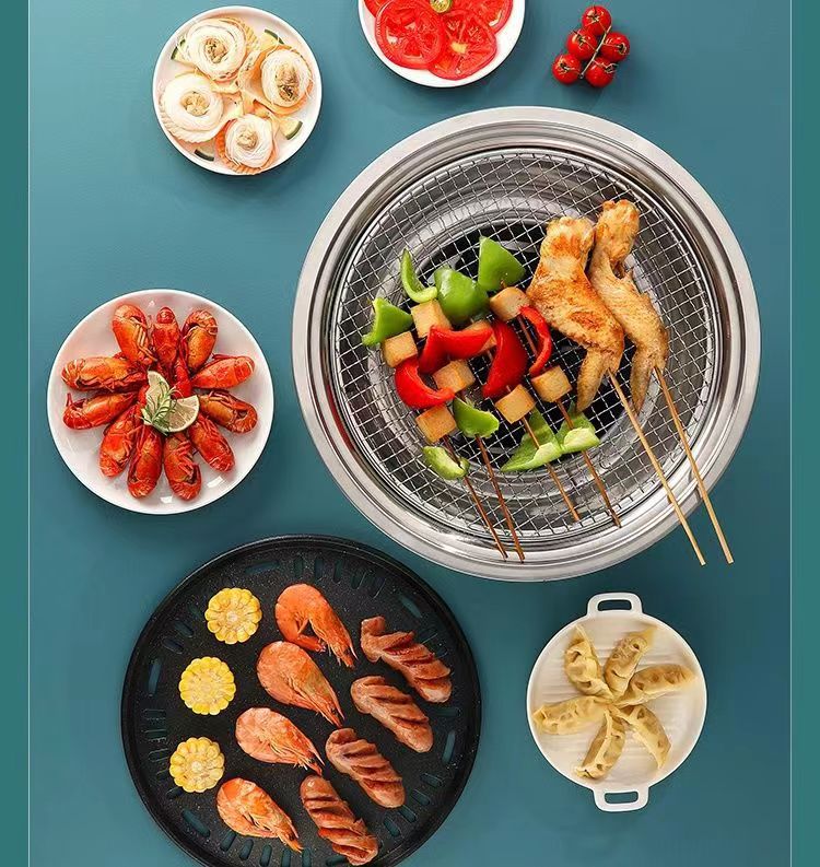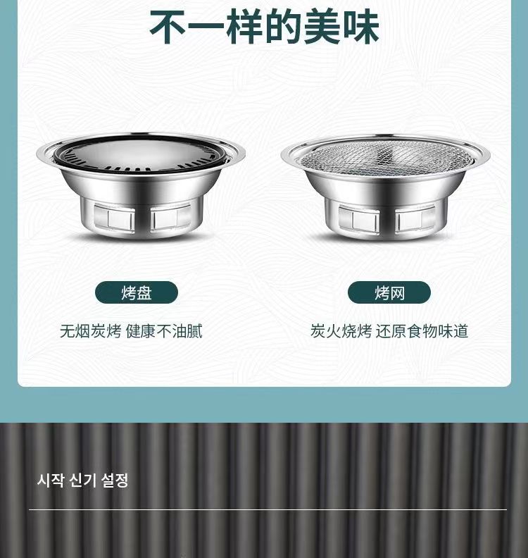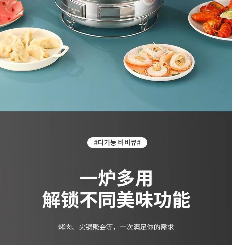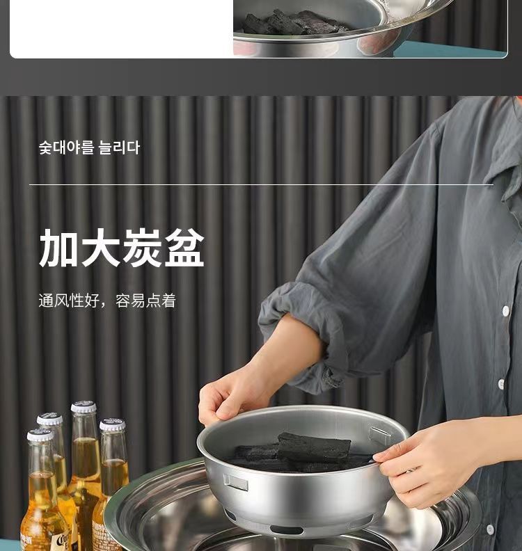 엄선된 스테인리스 한국식 바베큐 그릴 가정용 원형 숯불 그릴 야외 캠핑 다기능 소형 바베큐 그릴