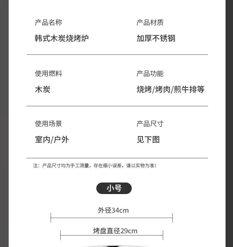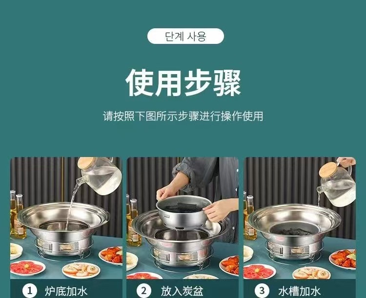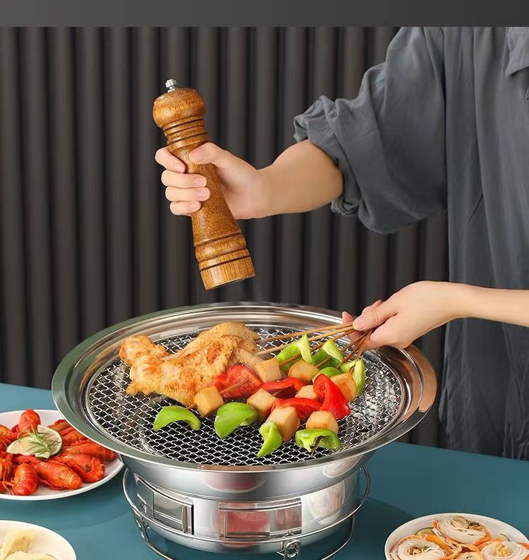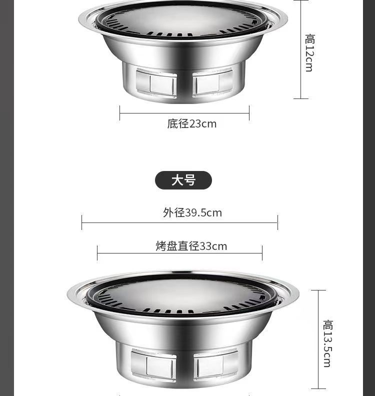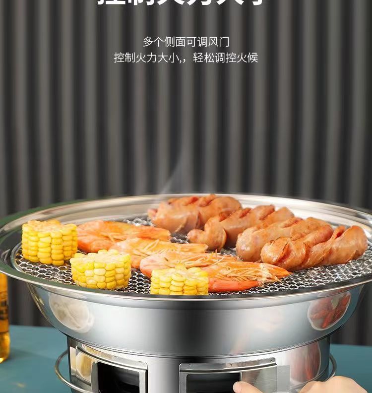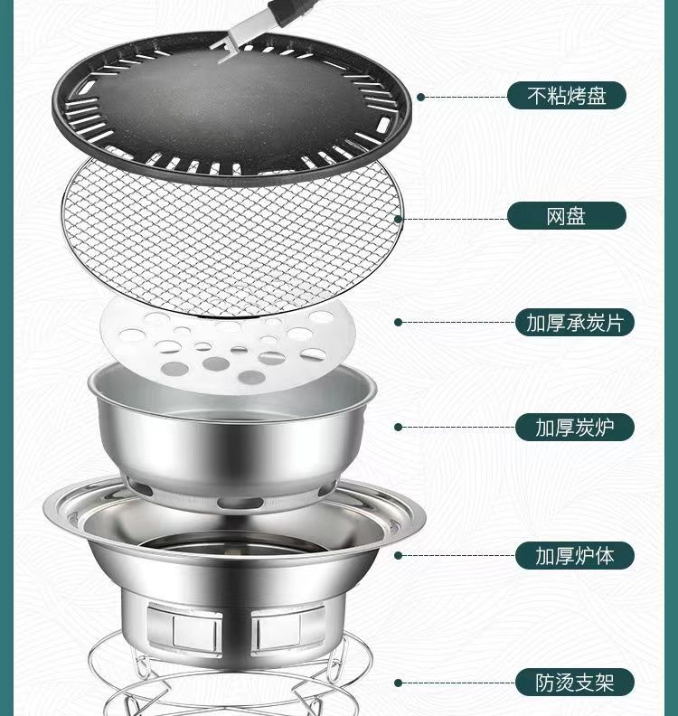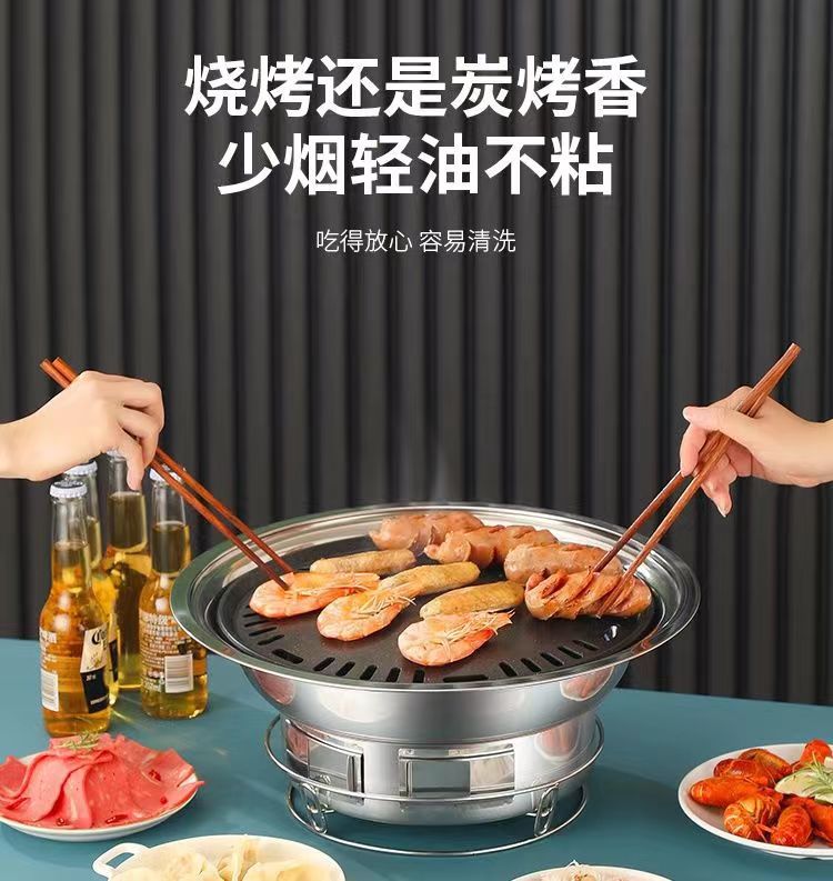 엄선된 스테인리스 한국식 바베큐 그릴 가정용 원형 숯불 그릴 야외 캠핑 다기능 소형 바베큐 그릴