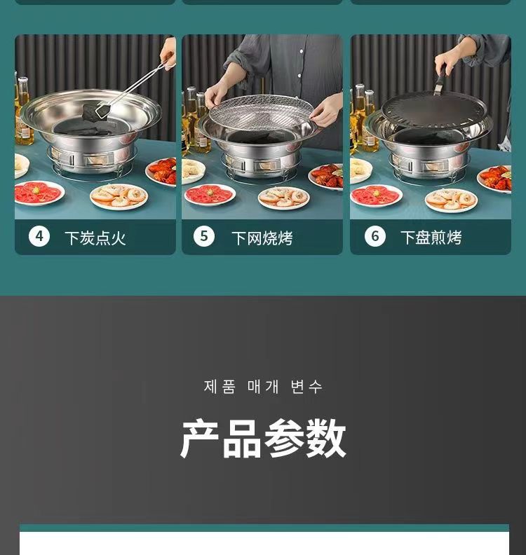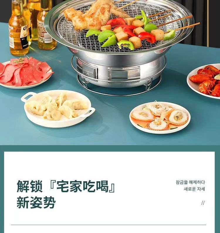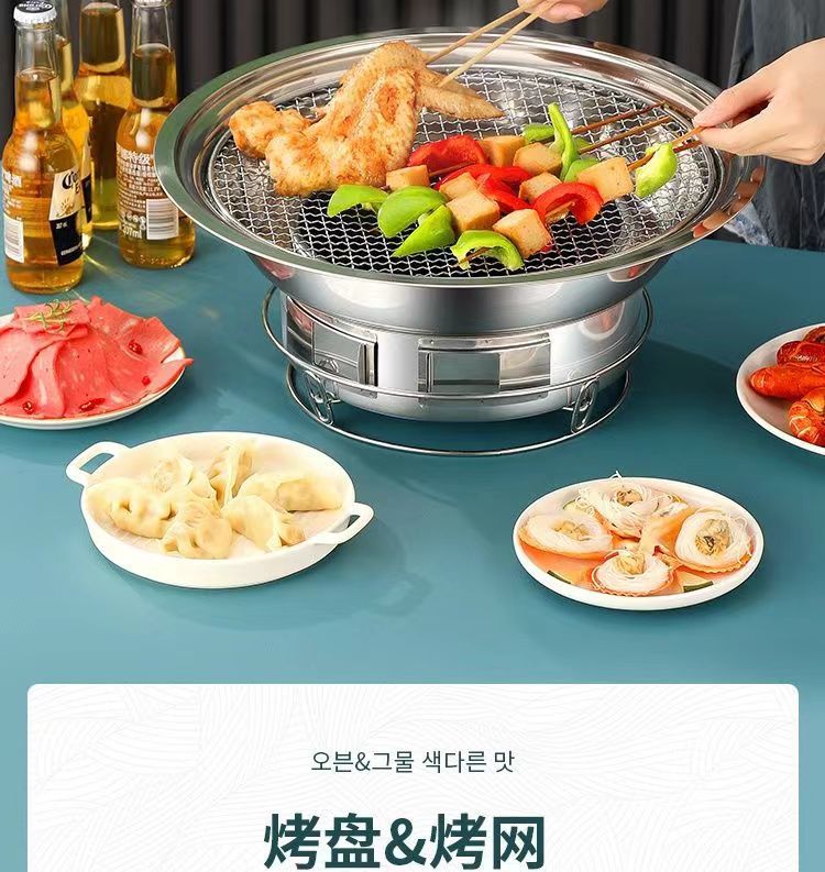 엄선된 스테인리스 한국식 바베큐 그릴 가정용 원형 숯불 그릴 야외 캠핑 다기능 소형 바베큐 그릴스토어 가기