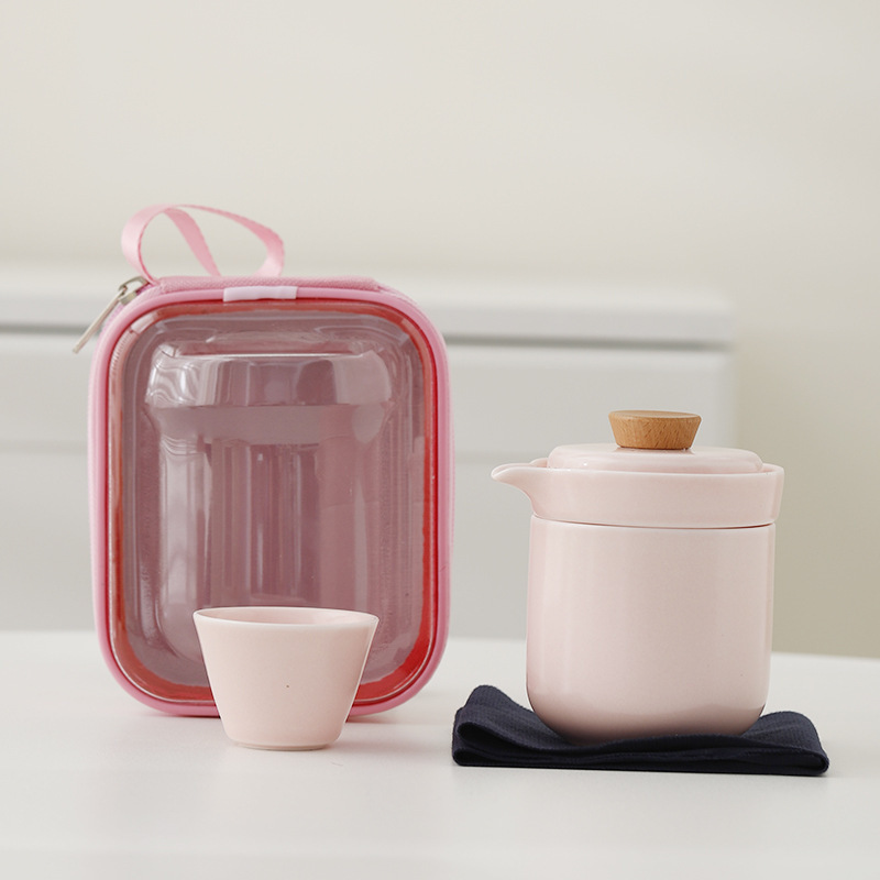 휴대용 여행 차 세트 작은 세트 휴대용 야외 가방 주전자 차 컵 단일 간단한 익스프레스 컵 원 포트 4 컵스토어 가기