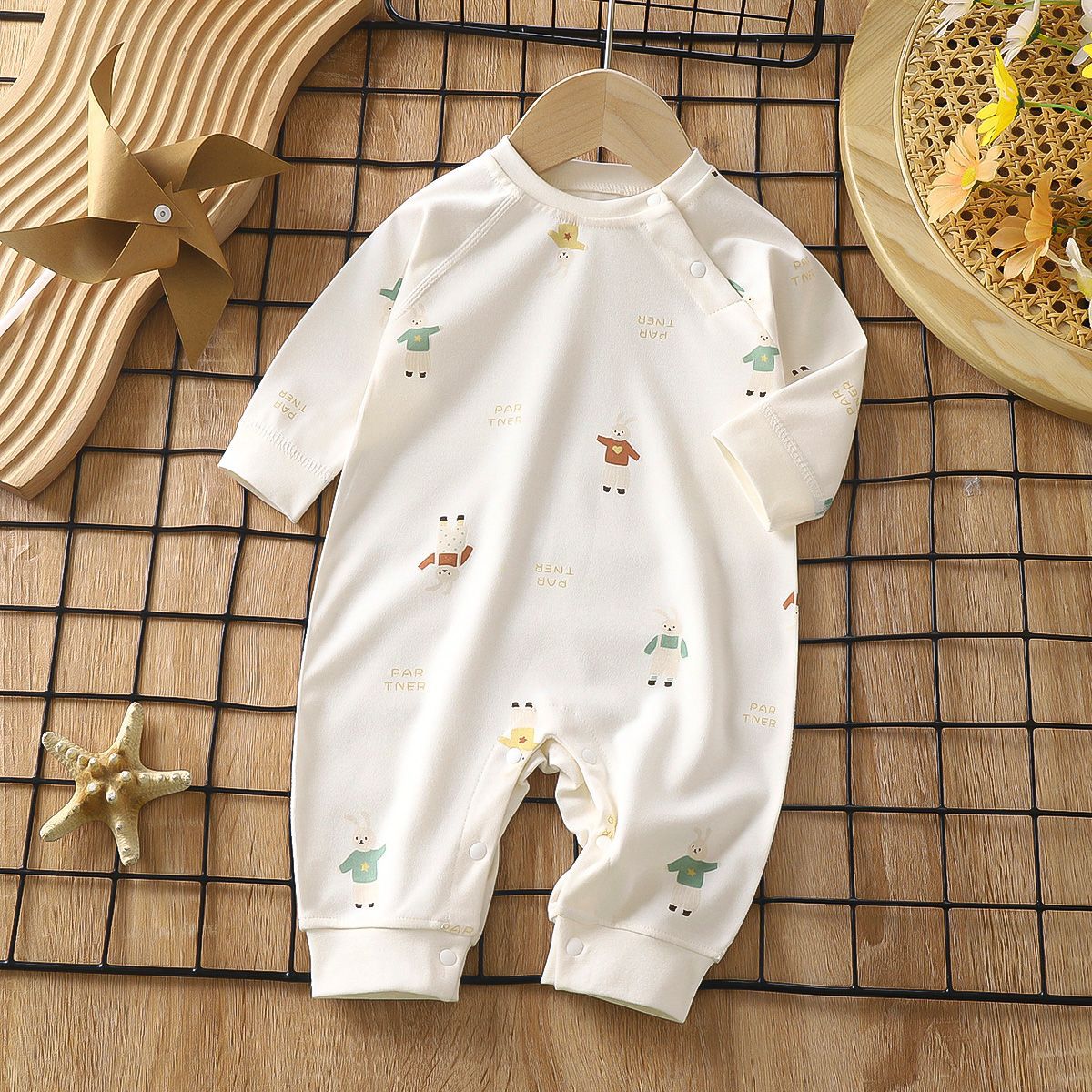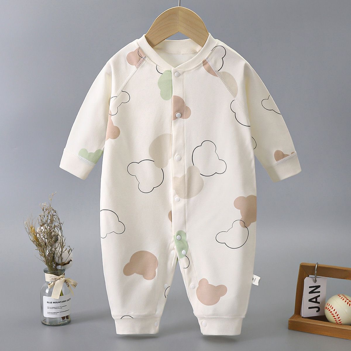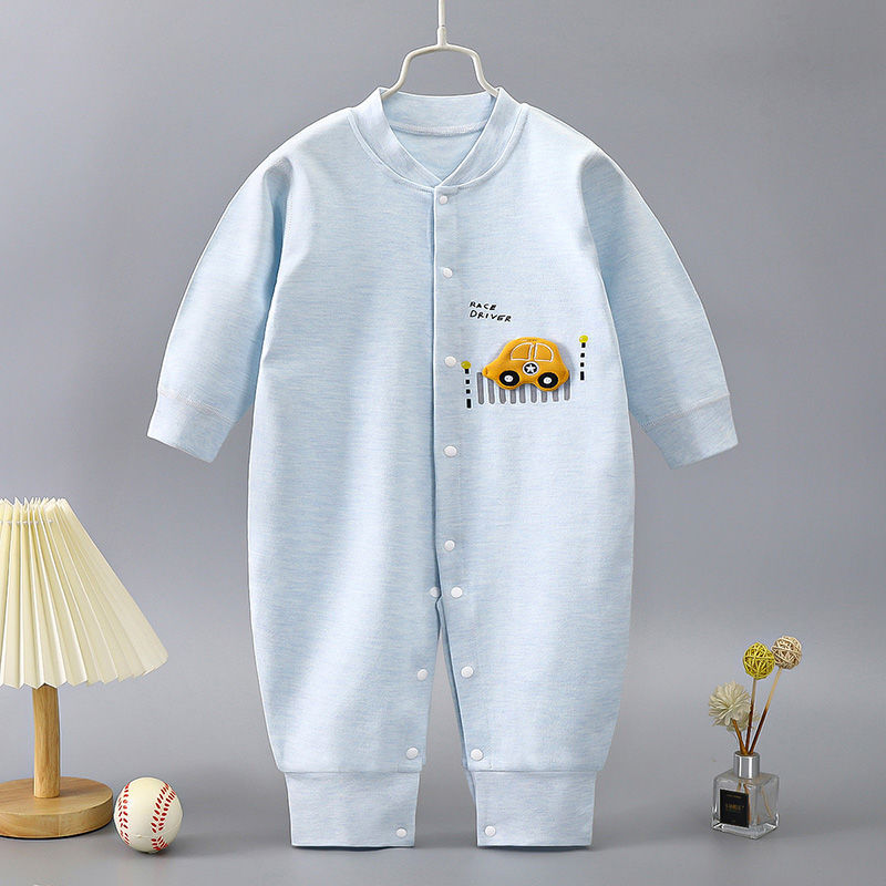 아기 점프 수트 봄과 가을면 긴팔 자카드 romper 신생아 아기 romper 단색 뼈없는 아기 옷스토어 가기