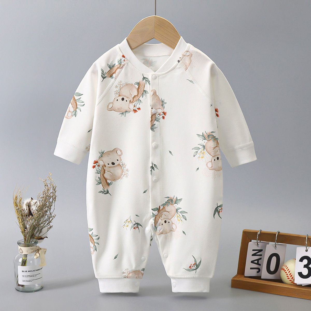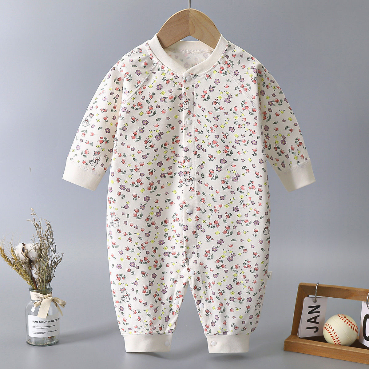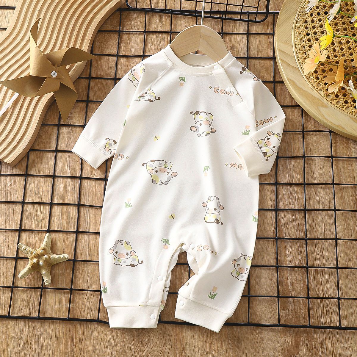 아기 점프 수트 봄과 가을면 긴팔 자카드 romper 신생아 아기 romper 단색 뼈없는 아기 옷스토어 가기