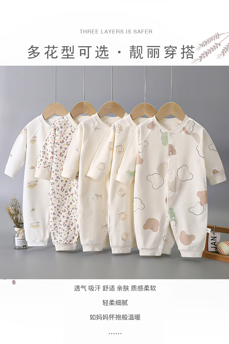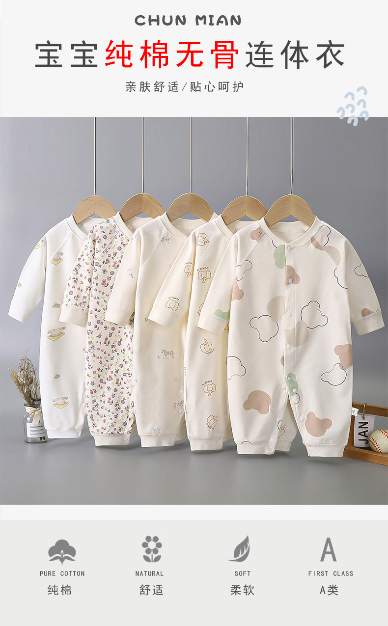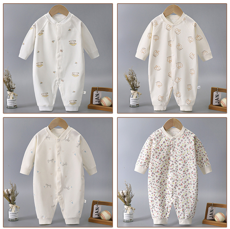 아기 점프 수트 2024 봄과 가을 남성과 여성 아기가 장난 꾸러기 뼈없는 순수한면 클래스 신생아 옷스토어 가기