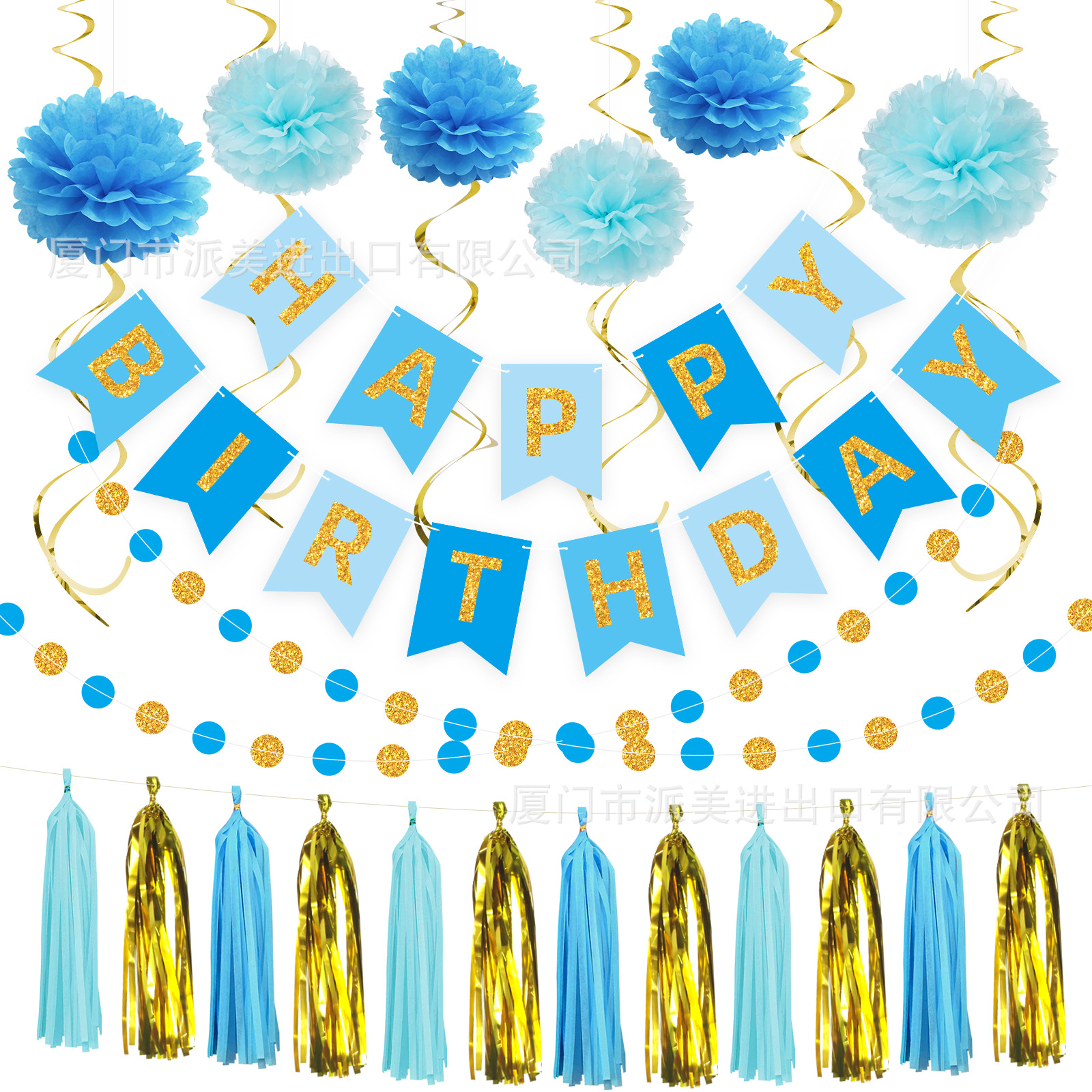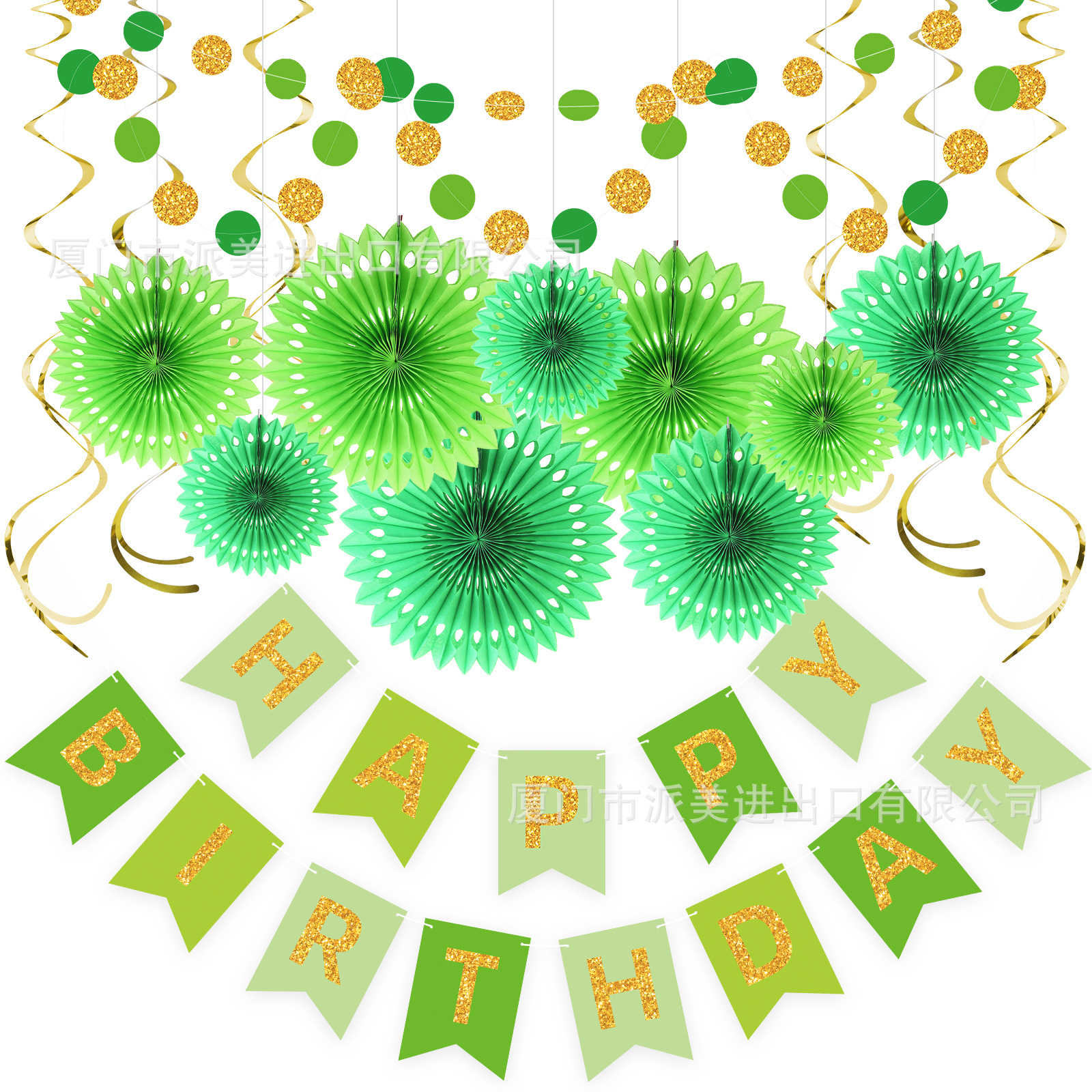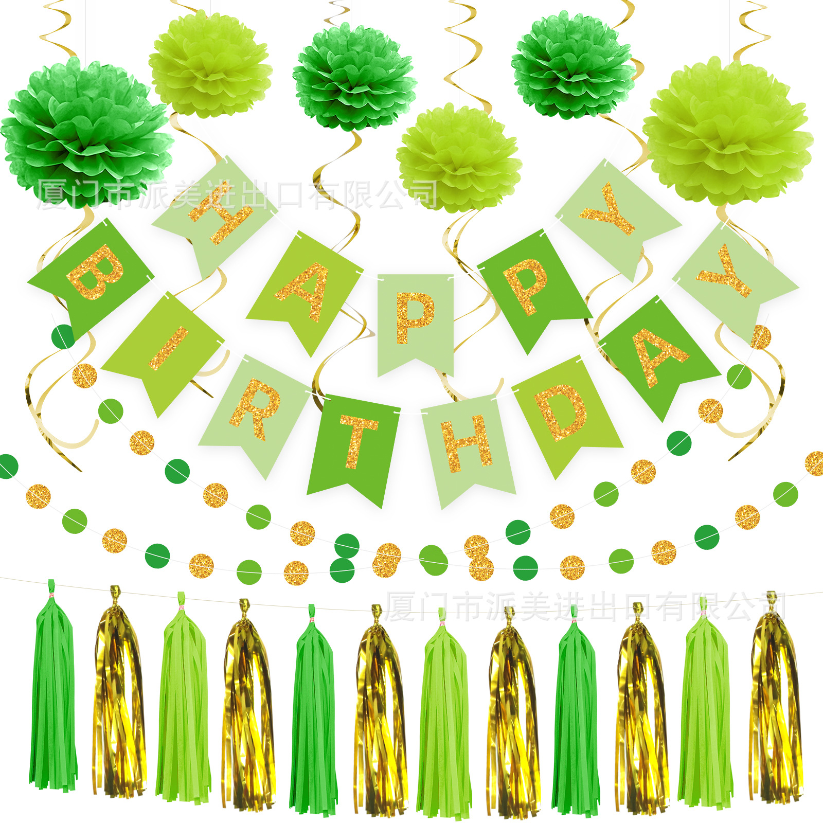 套装3包括:1条拉旗+2条纸串+1组纸花+1套流苏+6条螺旋