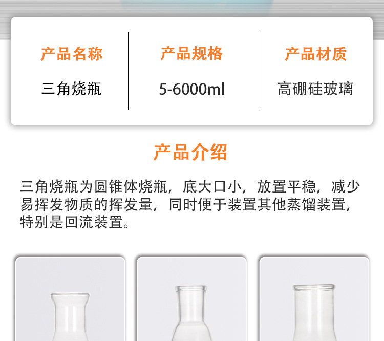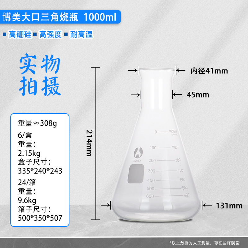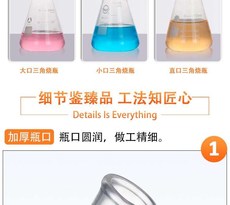 실험실 1121 삼각형 플라스크 Erlenmeyer 병 스트레이트 플레어 큰 입 삼각형 병 맞춤형 로고 꽃병스토어 가기