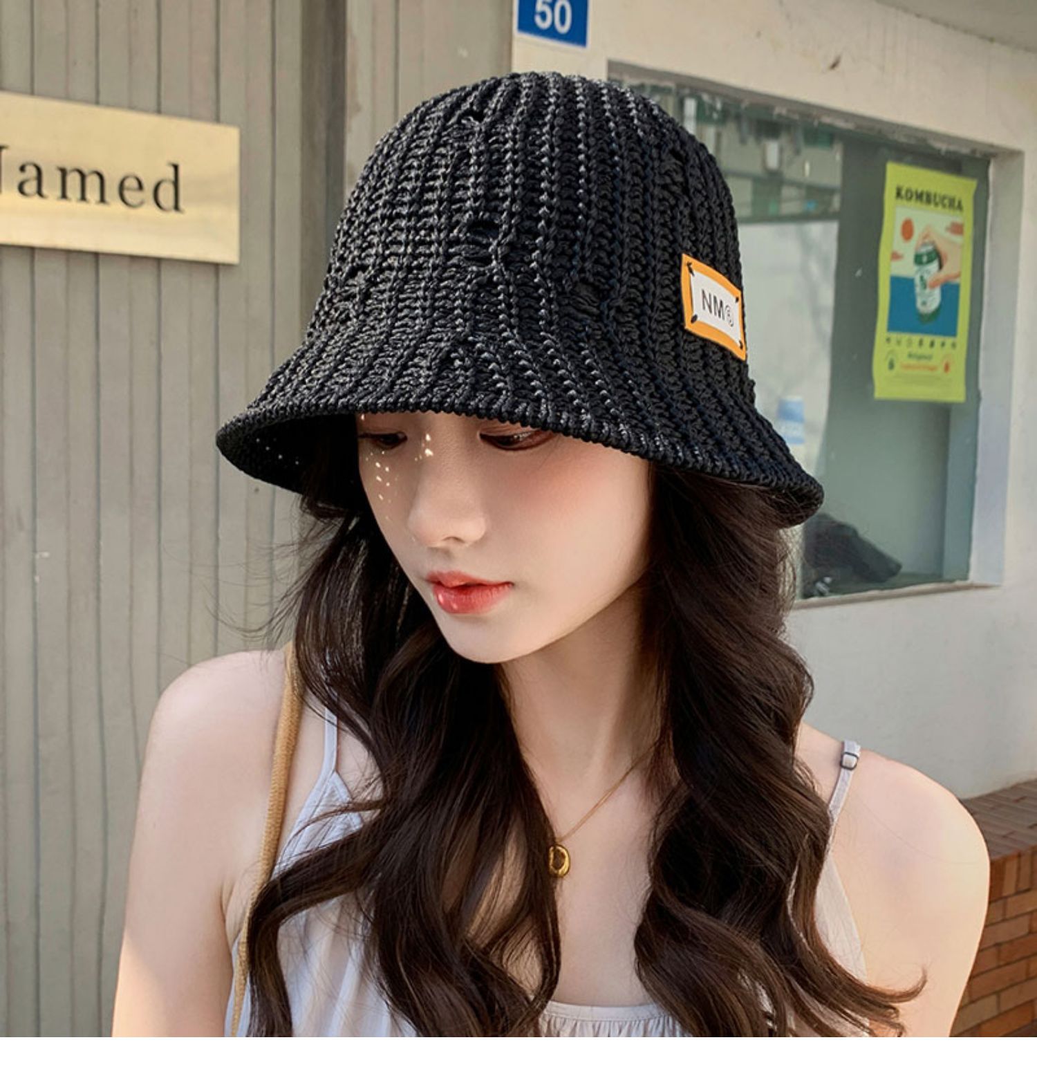 버킷 모자 여성의 여름 유행 통기성 중공 니트 작은 분지 모자 달콤한 소녀의 쇼핑 얼굴 보이는 작은 태양 방지 어부 모자스토어 가기
