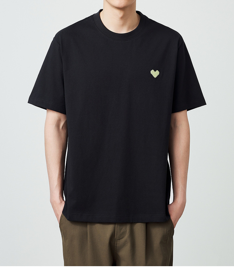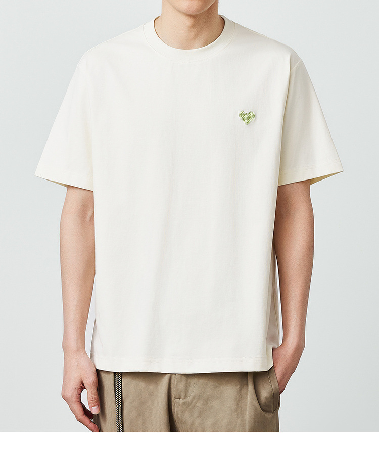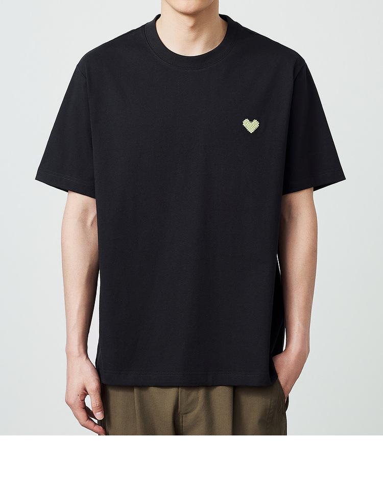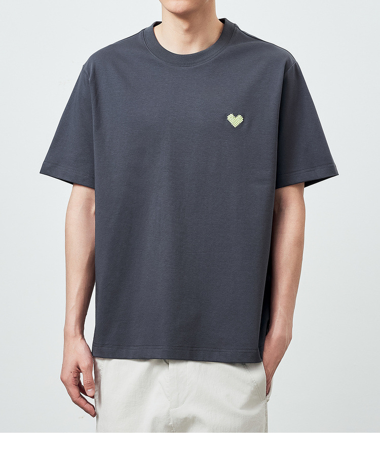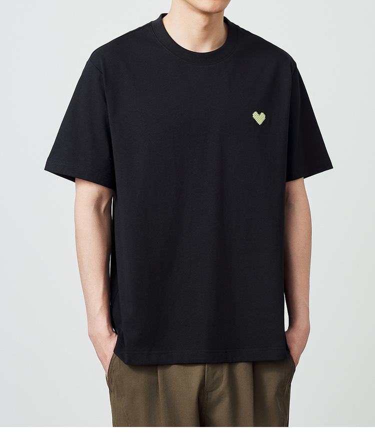 Momaike 심플 러브 자수 반팔 남성 2025 여름 신작 라운드 넥 쿨 남성 커플 티셔츠 71272