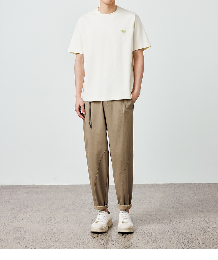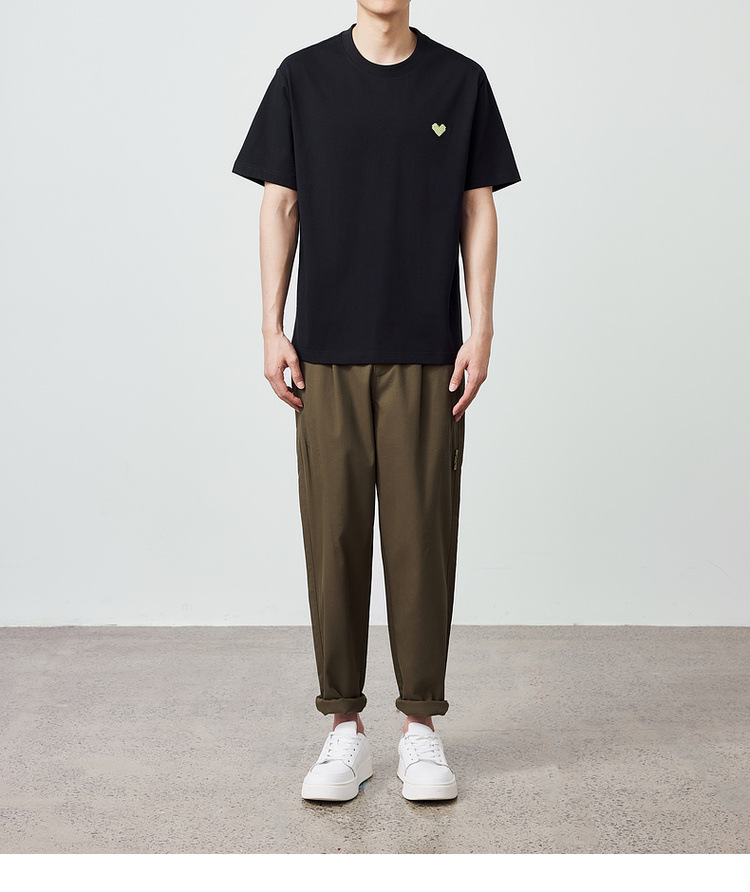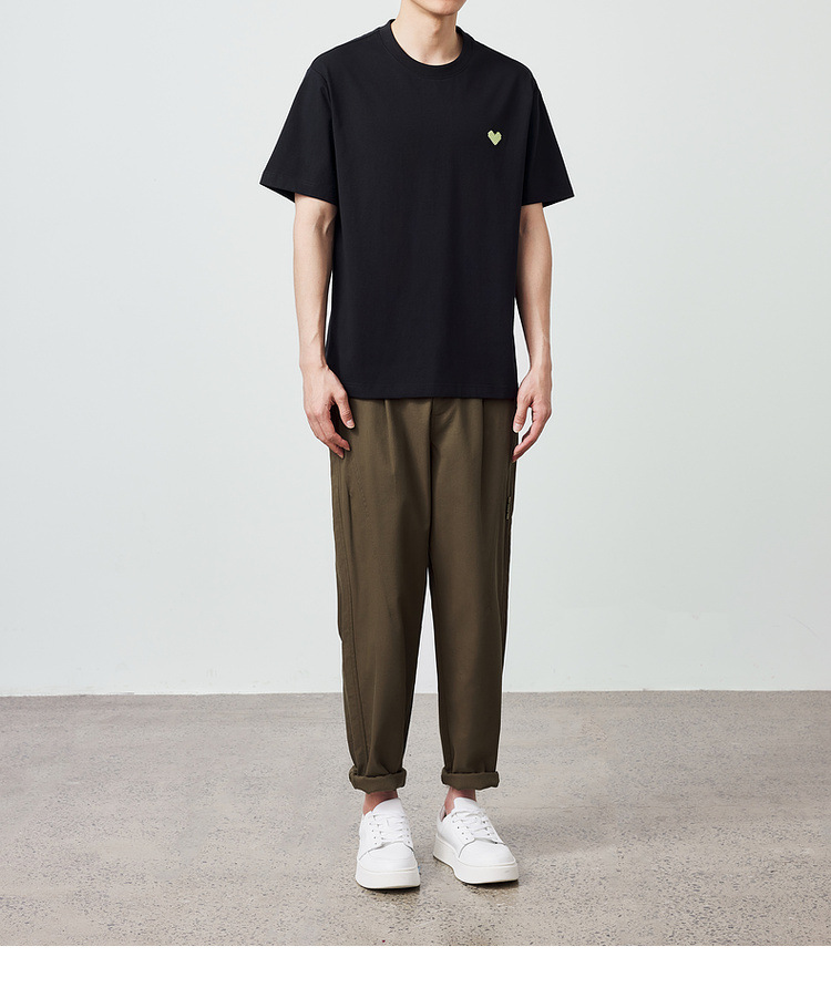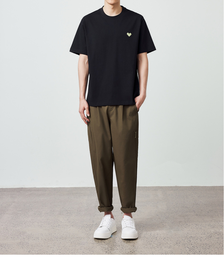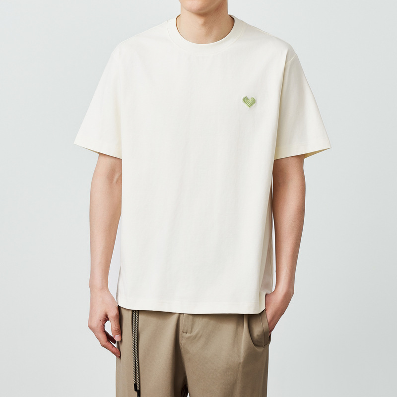 Momaike 심플 러브 자수 반팔 남성 2025 여름 신작 라운드 넥 쿨 남성 커플 티셔츠 71272
