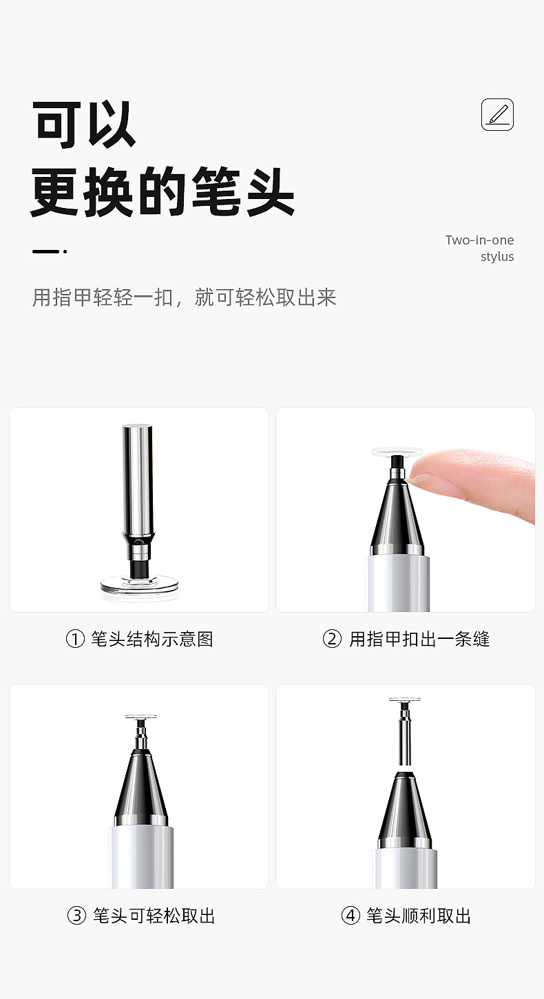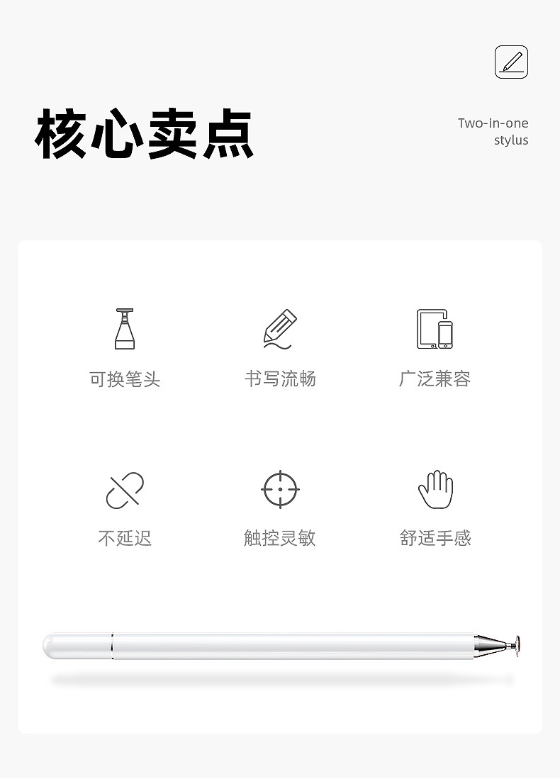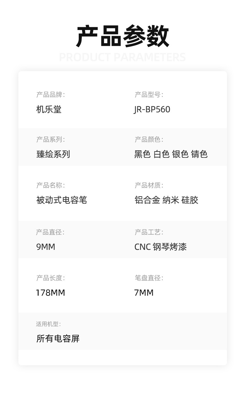 产品材质:铝合金笔身 纳米笔尖 硅胶