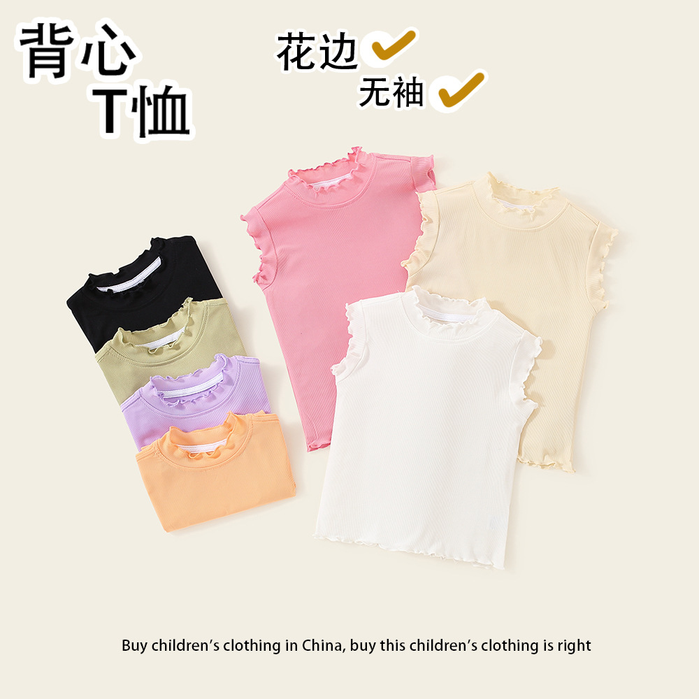 어린이 조끼 소녀 최고의 새로운 서양식 소녀 민소매 티셔츠 여름 얇은 겉옷 아기 반소매스토어 가기