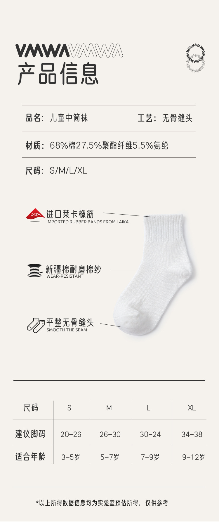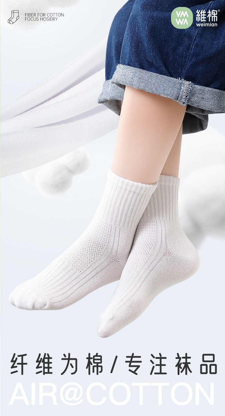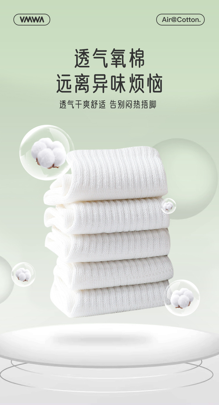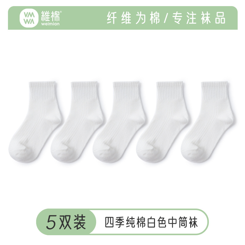 • VMQ124 포시즌스 퓨어 코튼 화이트 종아리 양말 [5켤레]
