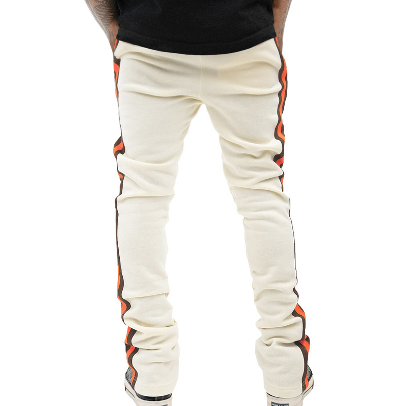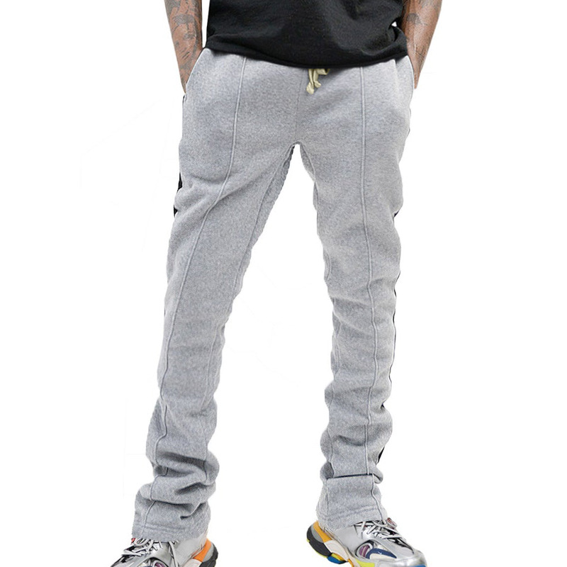유럽과 미국의 국경 봄과 가을 캐주얼 바지 남성 패치 워크 플레어 바지 스포츠 바지 새로운 남성 슬림 바지 바지 패션