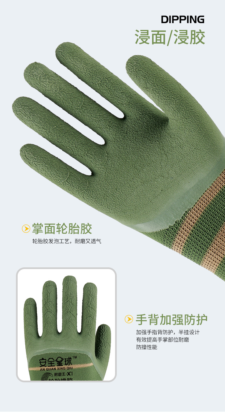 타이어 고무 장갑은 내마모성 미끄럼 방지 통기성 노동 보호 작업장 현장 벽돌 강철 작업 담그는 장갑을 두껍게