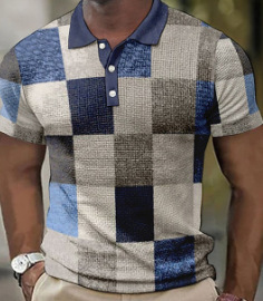 2023外贸跨境数码印花男子高尔夫球衫经典时尚格子条纹polo短袖