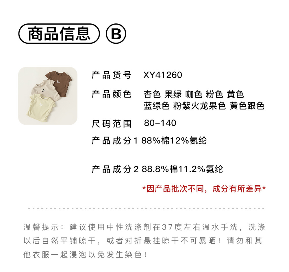 Yibao 아동복, 아동용 단색 옷, 세련된 라운드 넥 이너웨어, 여름 반팔 상의, 여아 캐주얼 레터 티셔츠스토어 가기