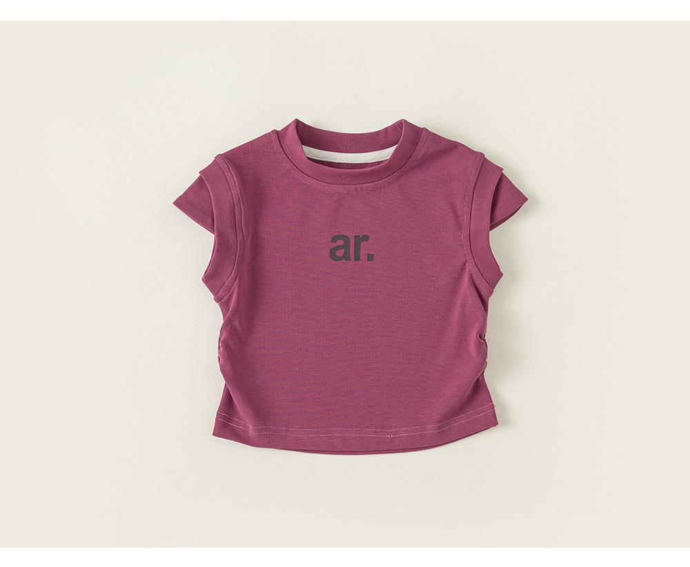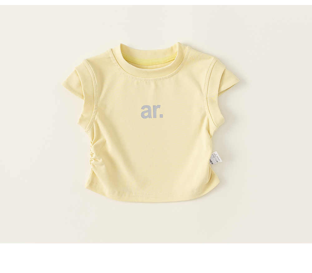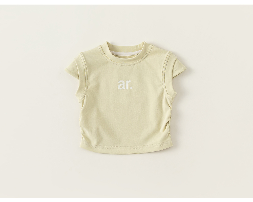 Yibao 아동복, 아동용 단색 옷, 세련된 라운드 넥 이너웨어, 여름 반팔 상의, 여아 캐주얼 레터 티셔츠