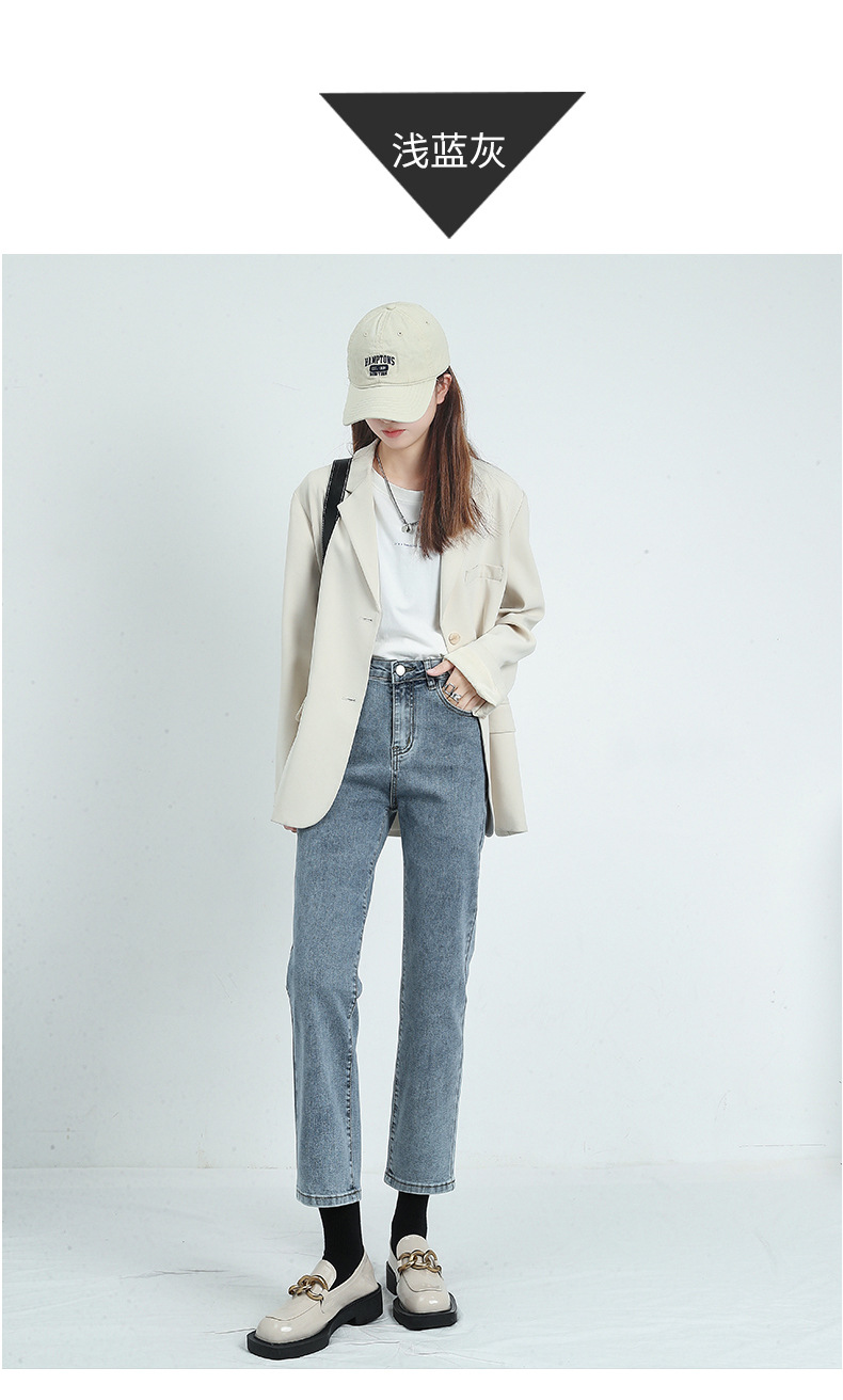 여성 연기 튜브 청바지 2024 봄 새로운 높은 허리 스트레치 슬림 핏 슬리밍 작은 좁은 크롭 스트레이트 팬츠스토어 가기