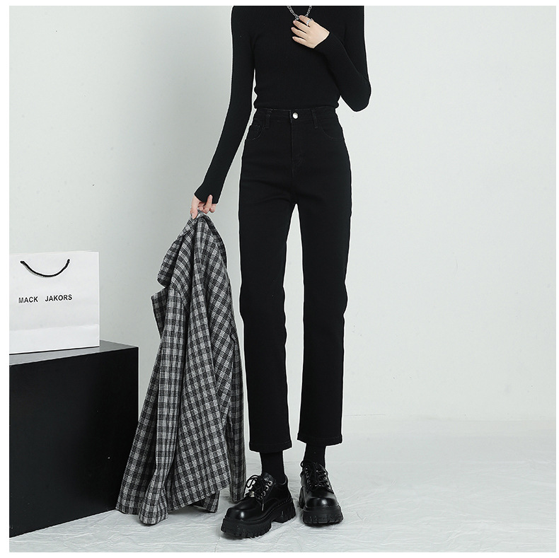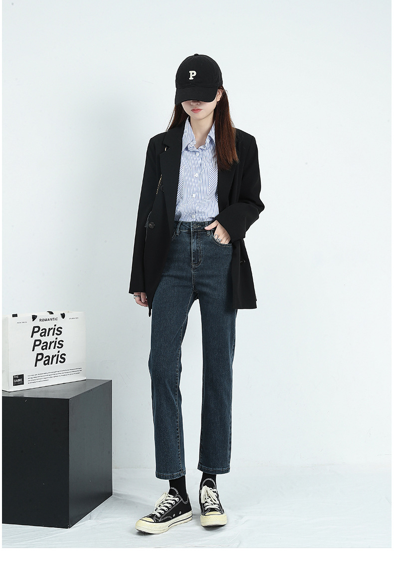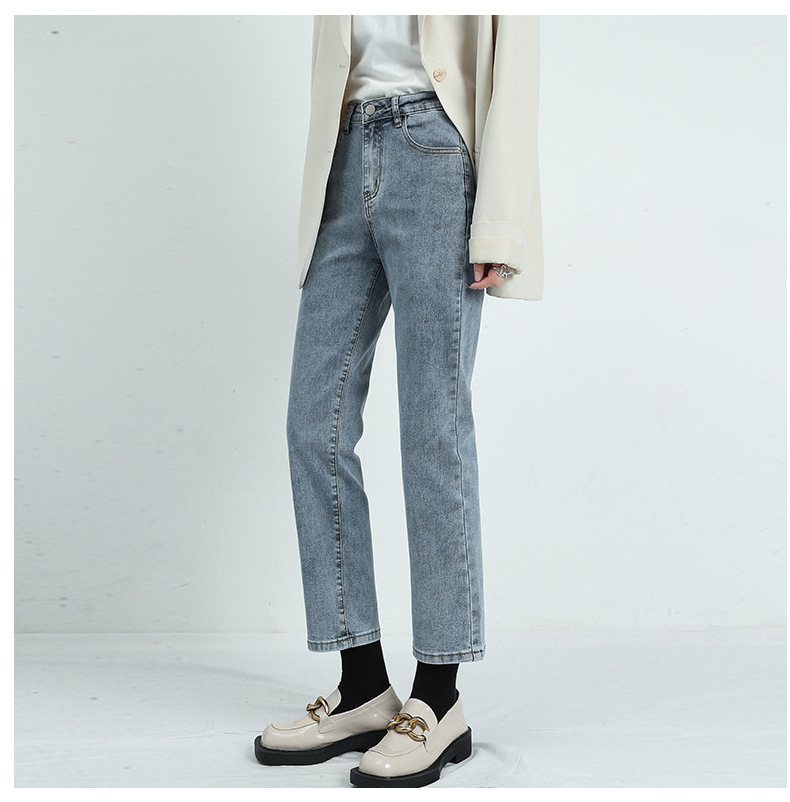 여성 연기 튜브 청바지 2024 봄 새로운 높은 허리 스트레치 슬림 핏 슬리밍 작은 좁은 크롭 스트레이트 팬츠