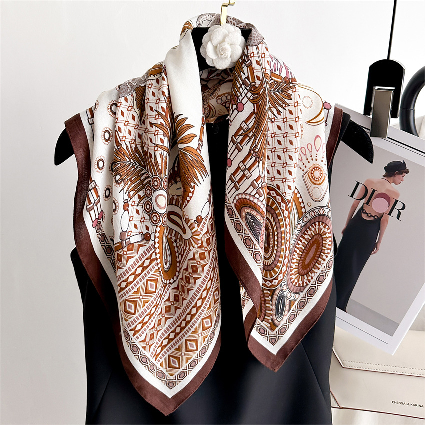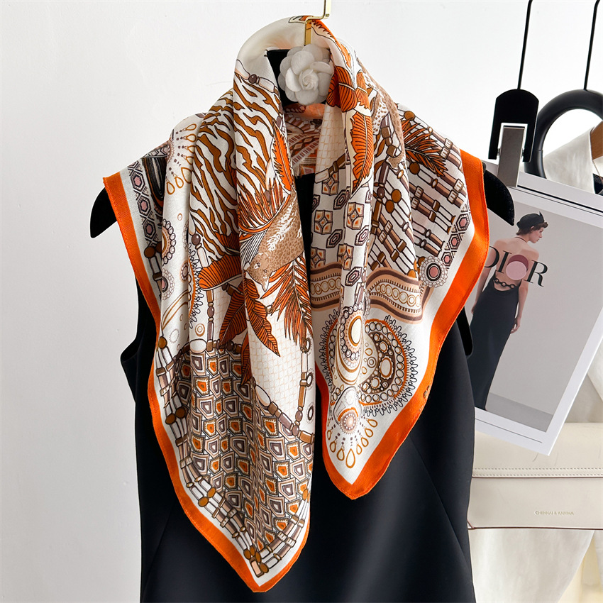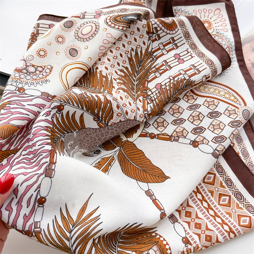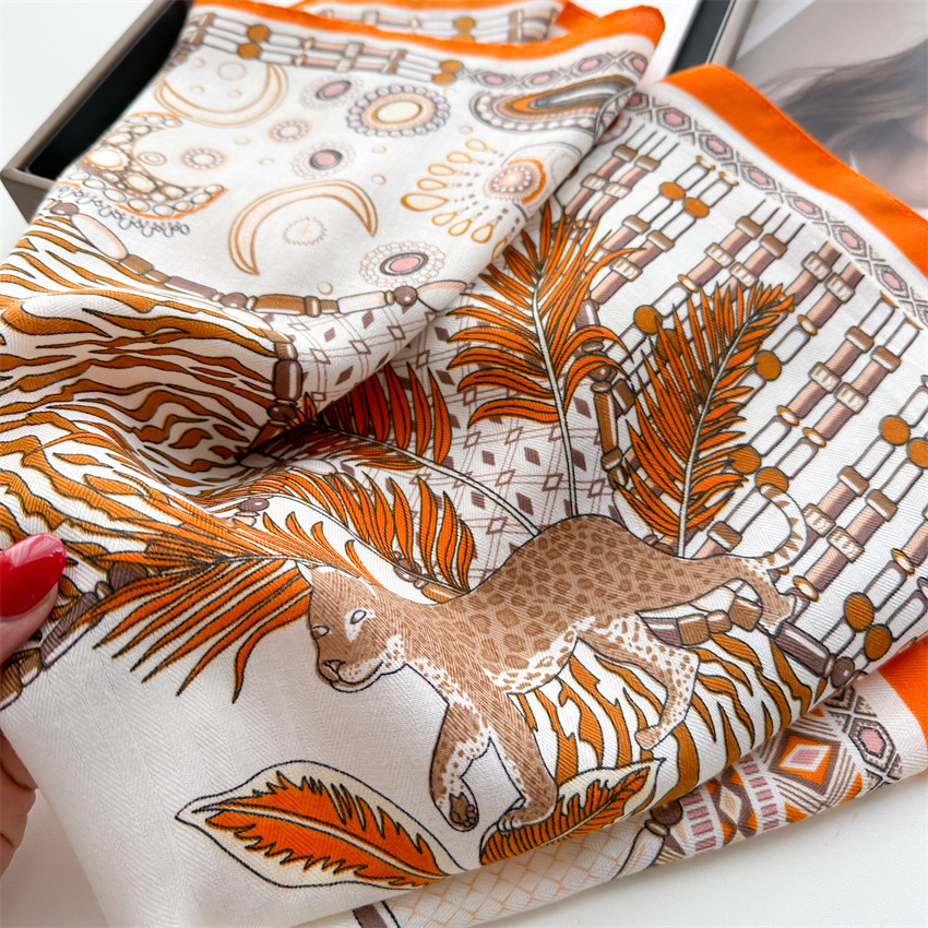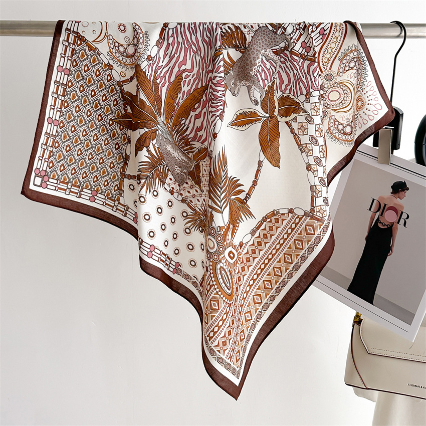새로운 정글 치타 스카프 65 × 65cm 얇은 유럽과 미국 패션면 및 린넨 여성용 벨벳 스카프