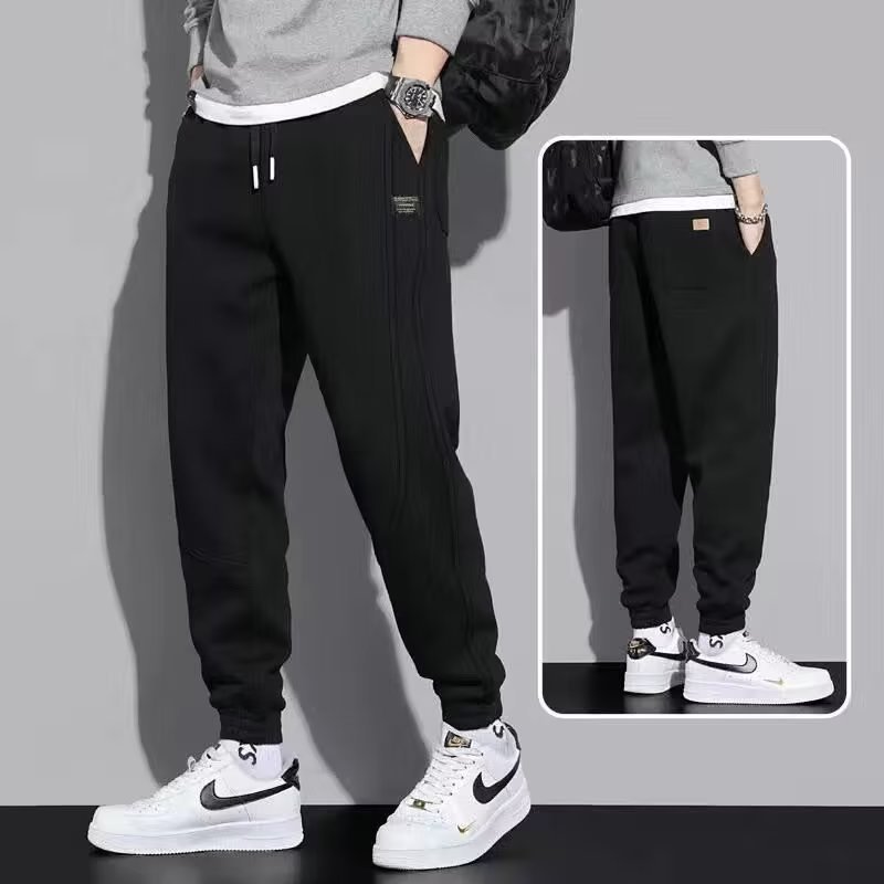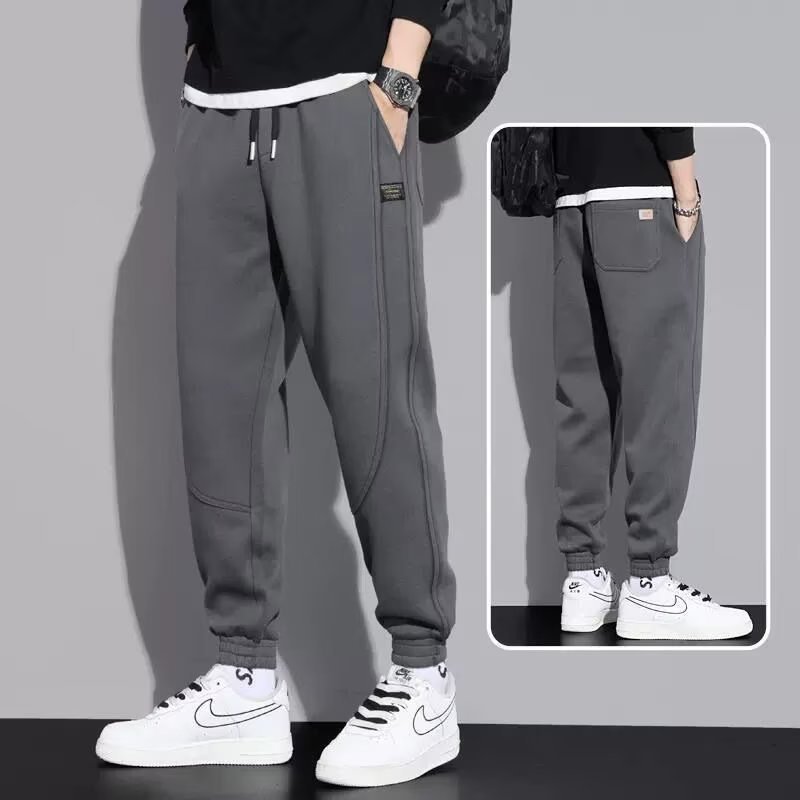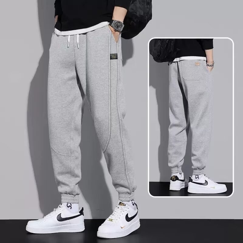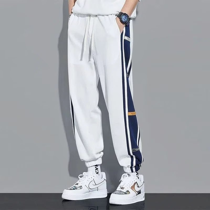 봄과 가을 흰색 발목 묶인 스웨트 팬츠 남성용 한국식 트렌디 한 남성용 느슨한 스트레이트 패션 브랜드 플러스 사이즈 캐주얼 스포츠 바지