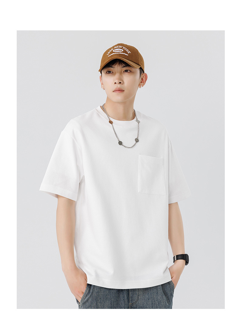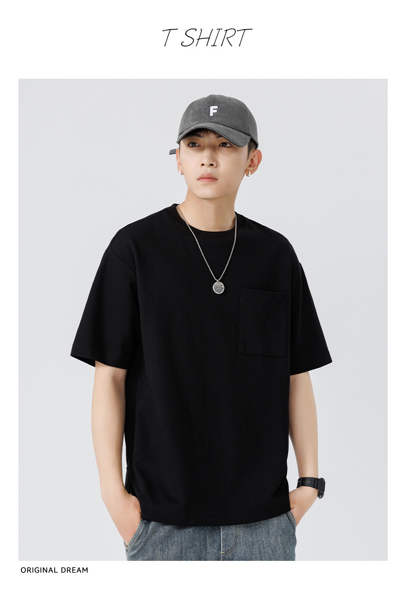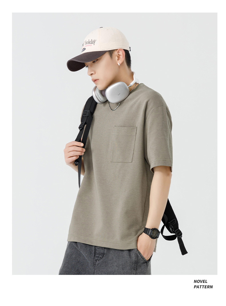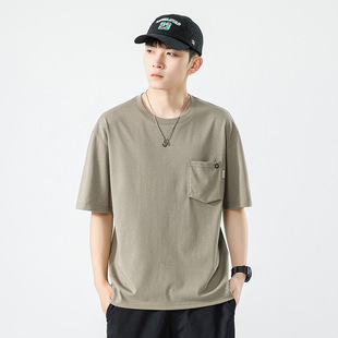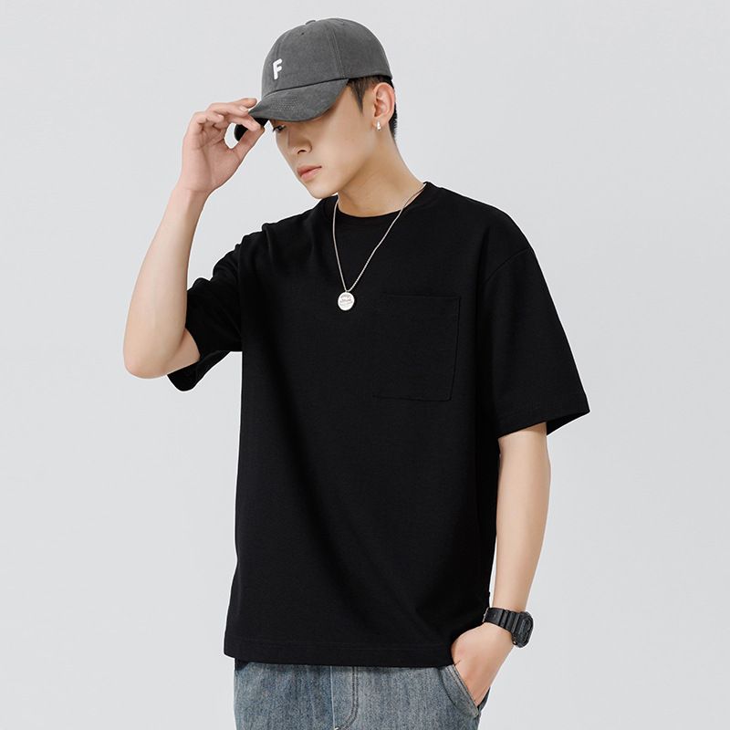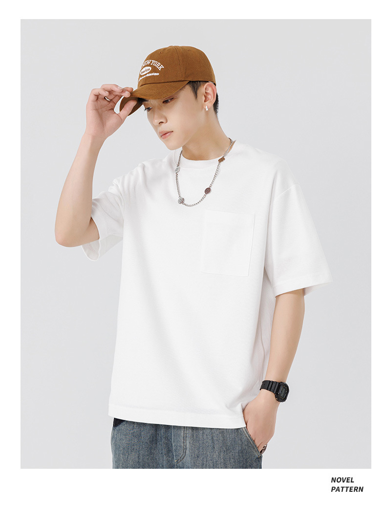 반팔 티셔츠 남자 Haipeng 구름 여름 새 주머니 무거운 둥근 목 남자 반팔 티셔츠 소년 바닥 셔츠