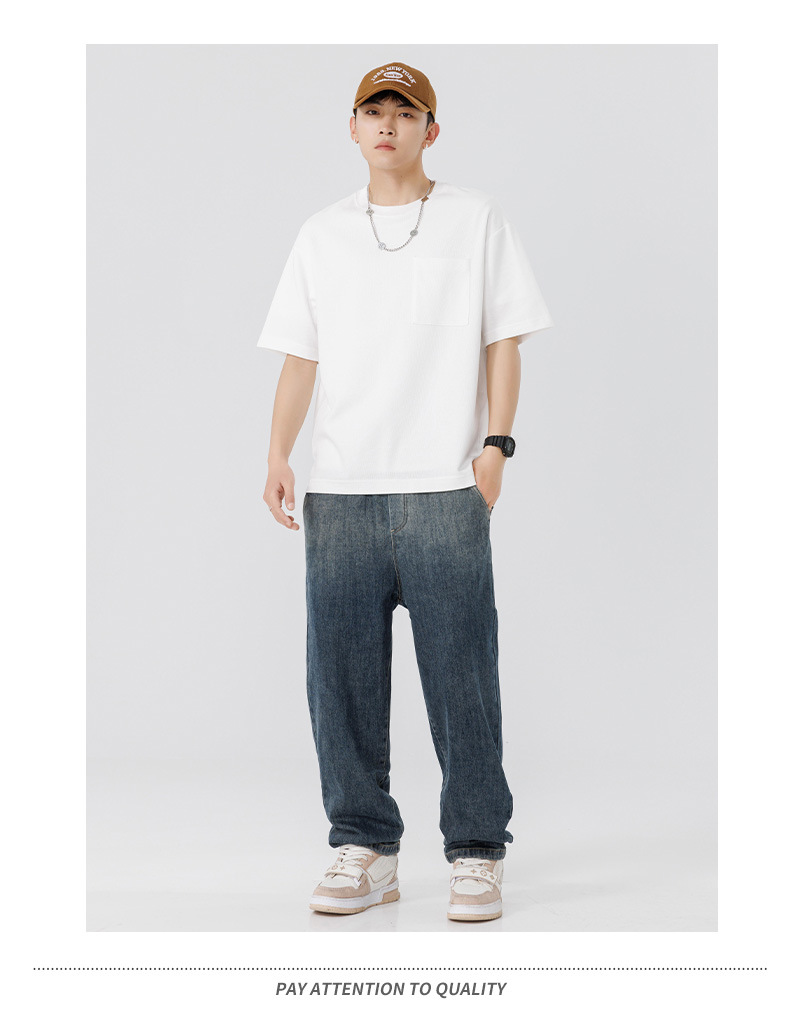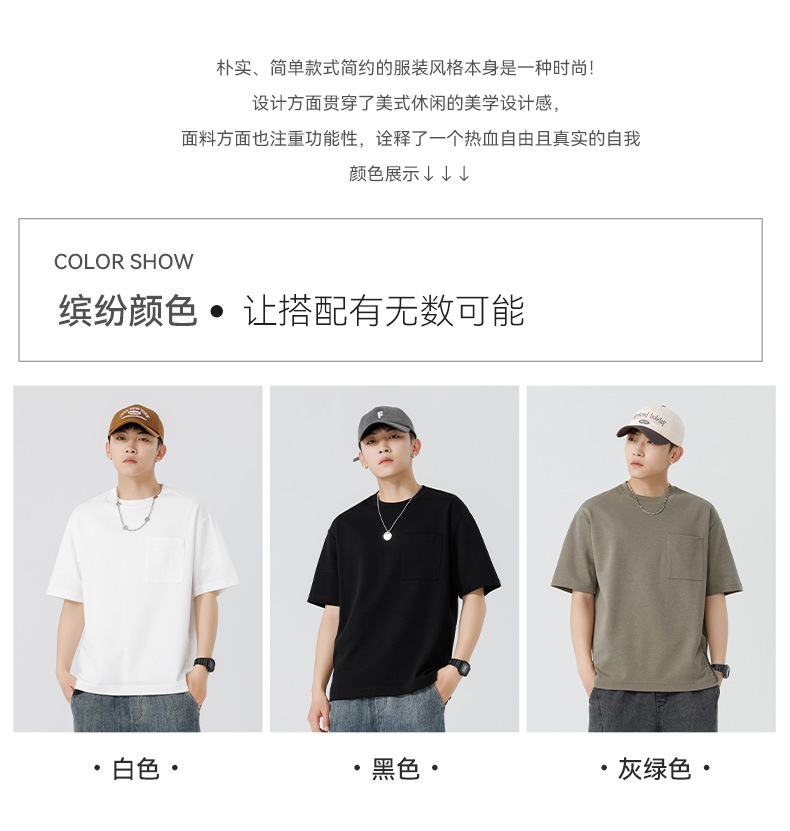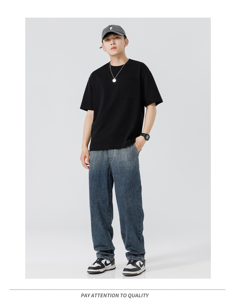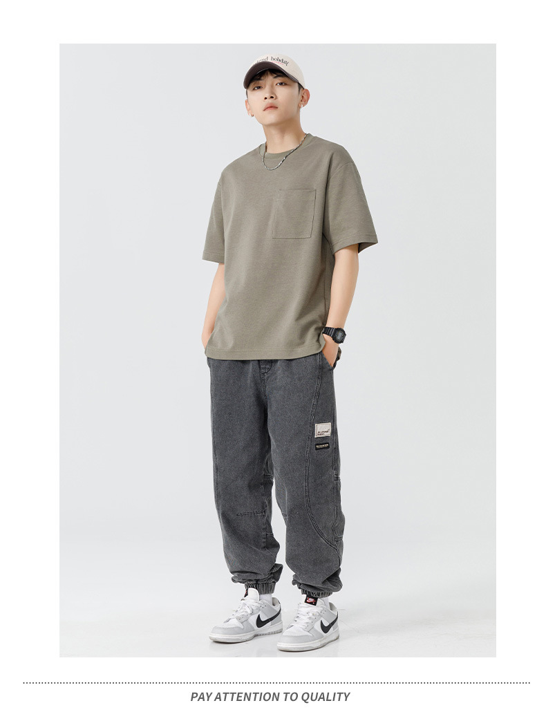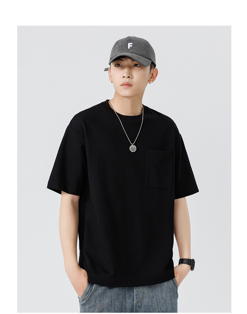 반팔 티셔츠 남자 Haipeng 구름 여름 새 주머니 무거운 둥근 목 남자 반팔 티셔츠 소년 바닥 셔츠