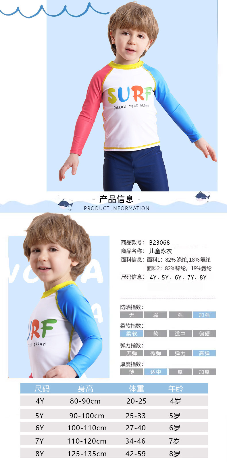 어린이 수영복 소년의 긴팔 수영복 2024 새 편지 인쇄 바지 소년 국경 수영복스토어 가기