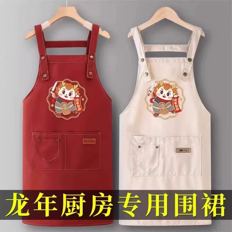 드래곤 년 주방 특수 앞치마 여성의 강력한 방수 방오 가정용 요리 작업복 2024 새로운 면화 작업복