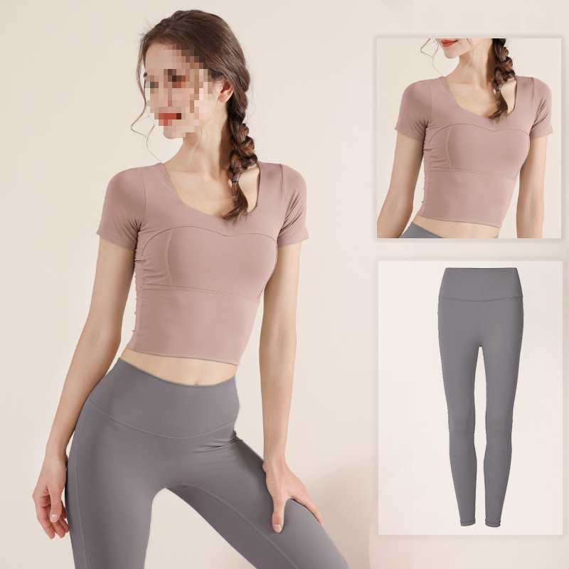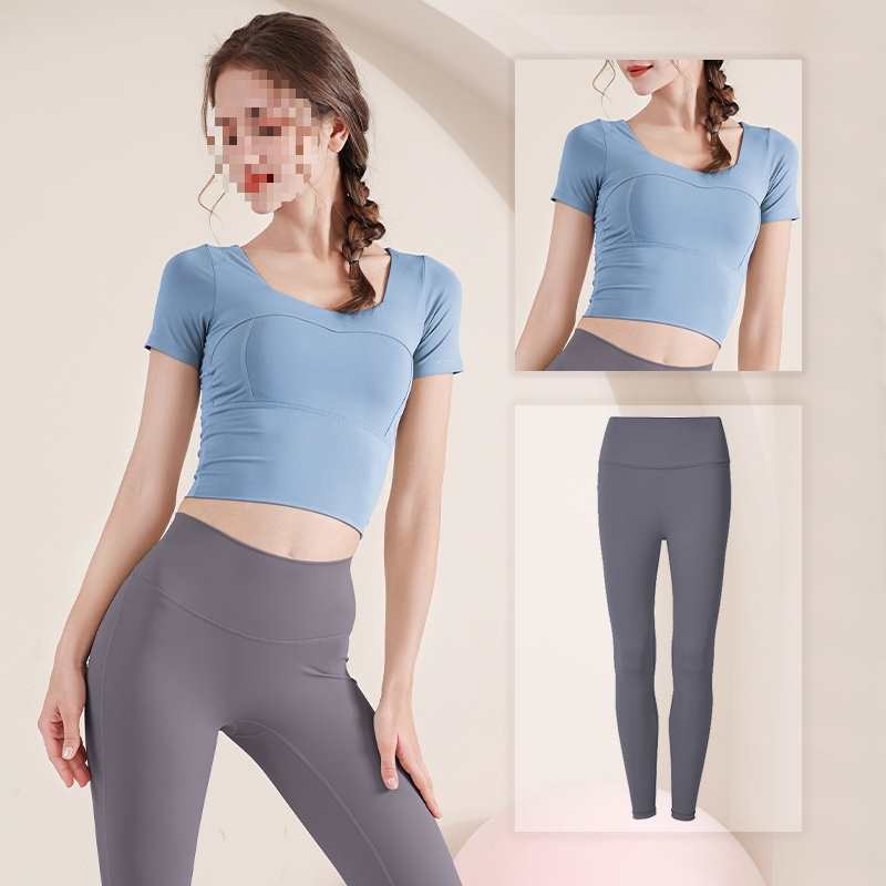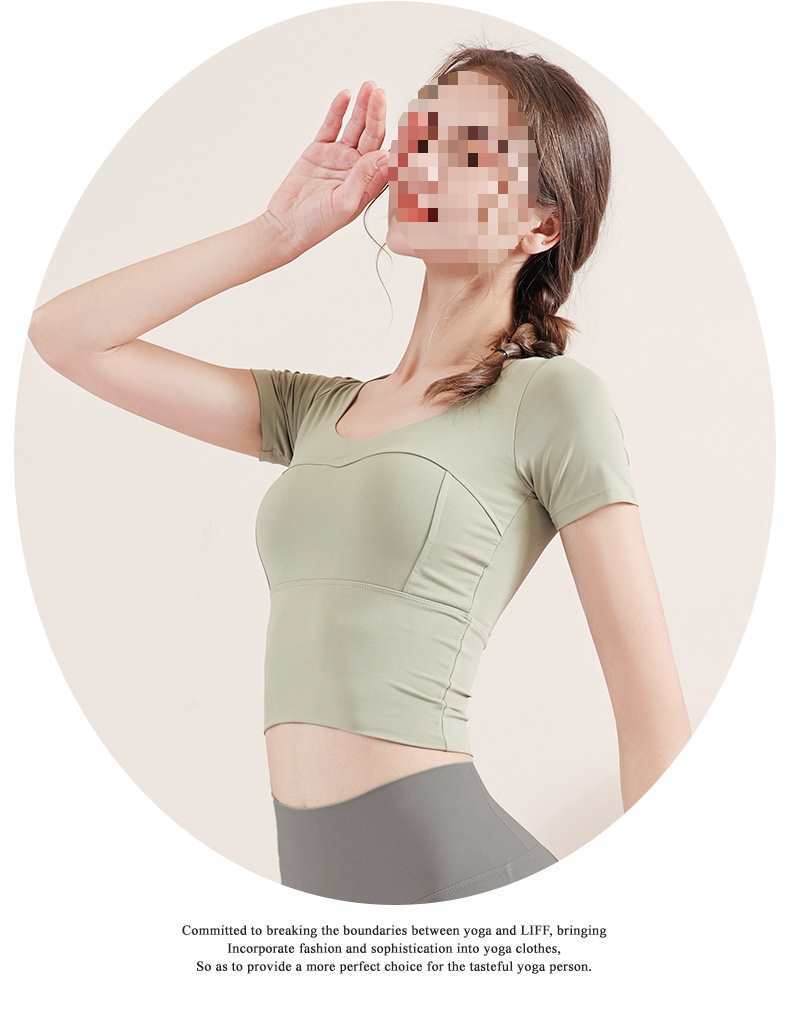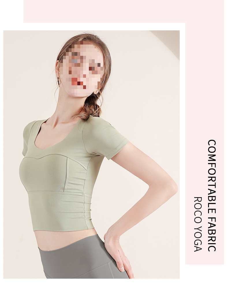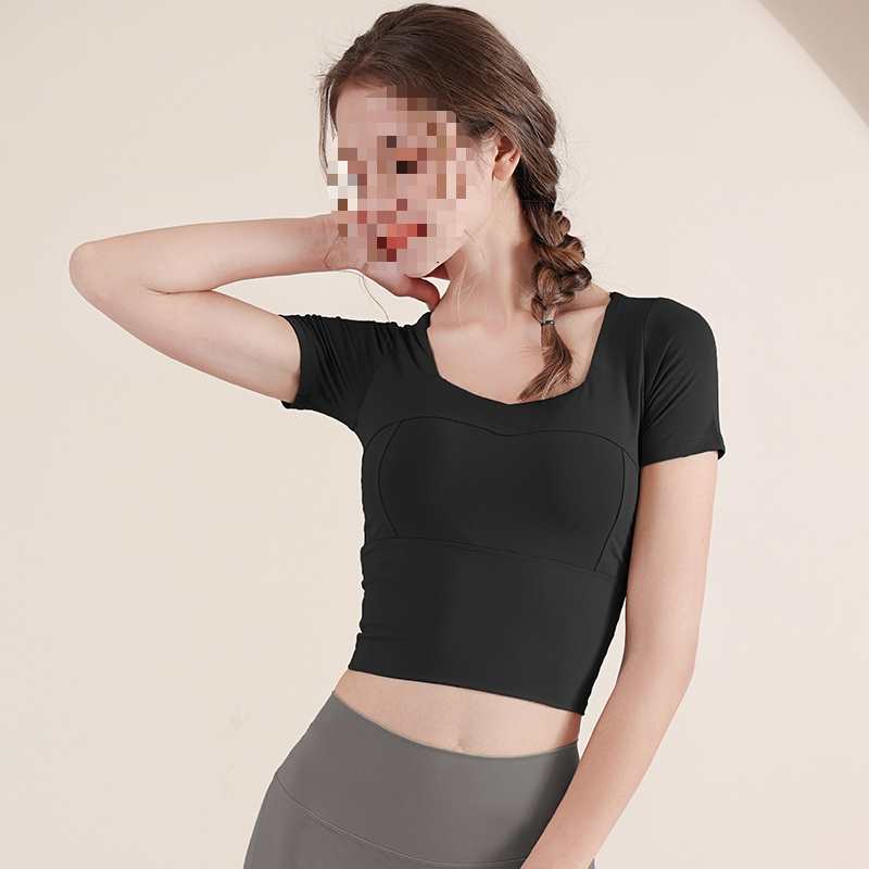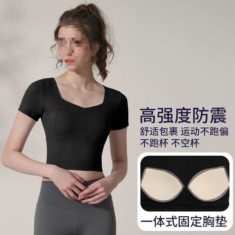 여성용 요가복, 가슴 패드가 있는 반팔 상의, 스포츠 피트니스복, 트레이닝 속건복, 여름스토어 가기