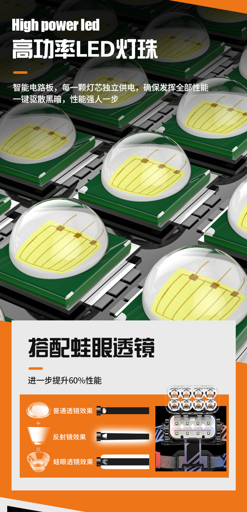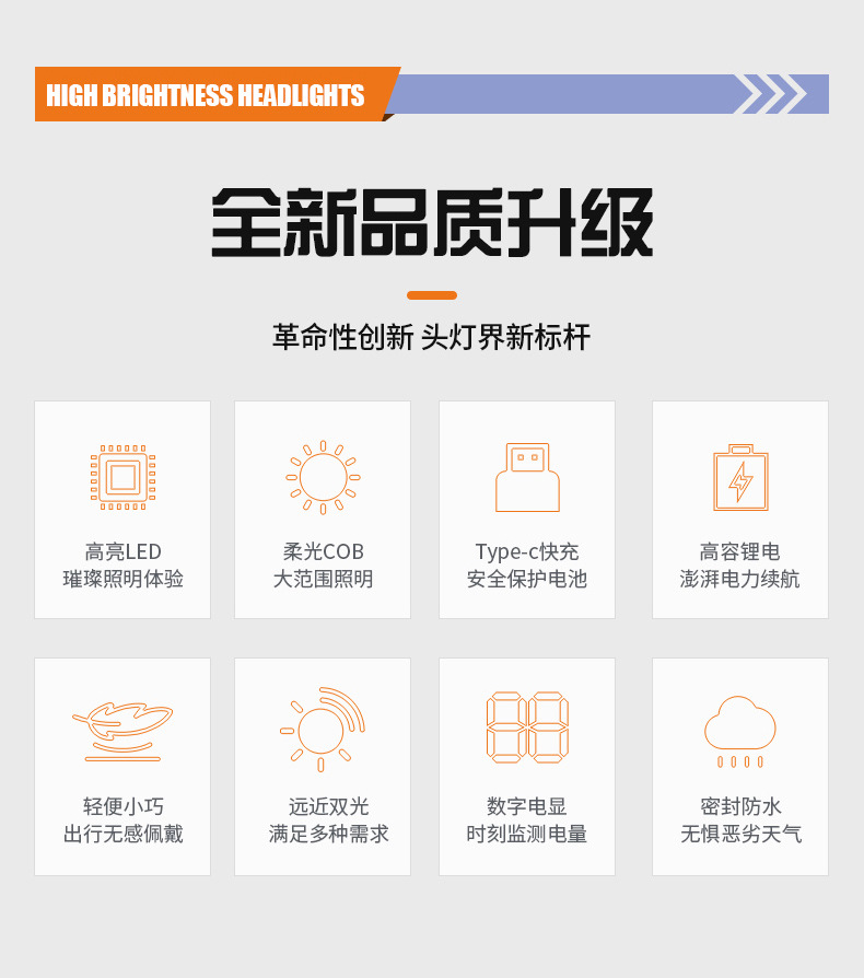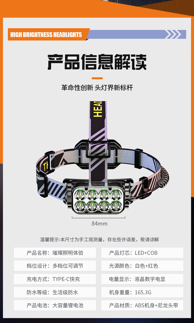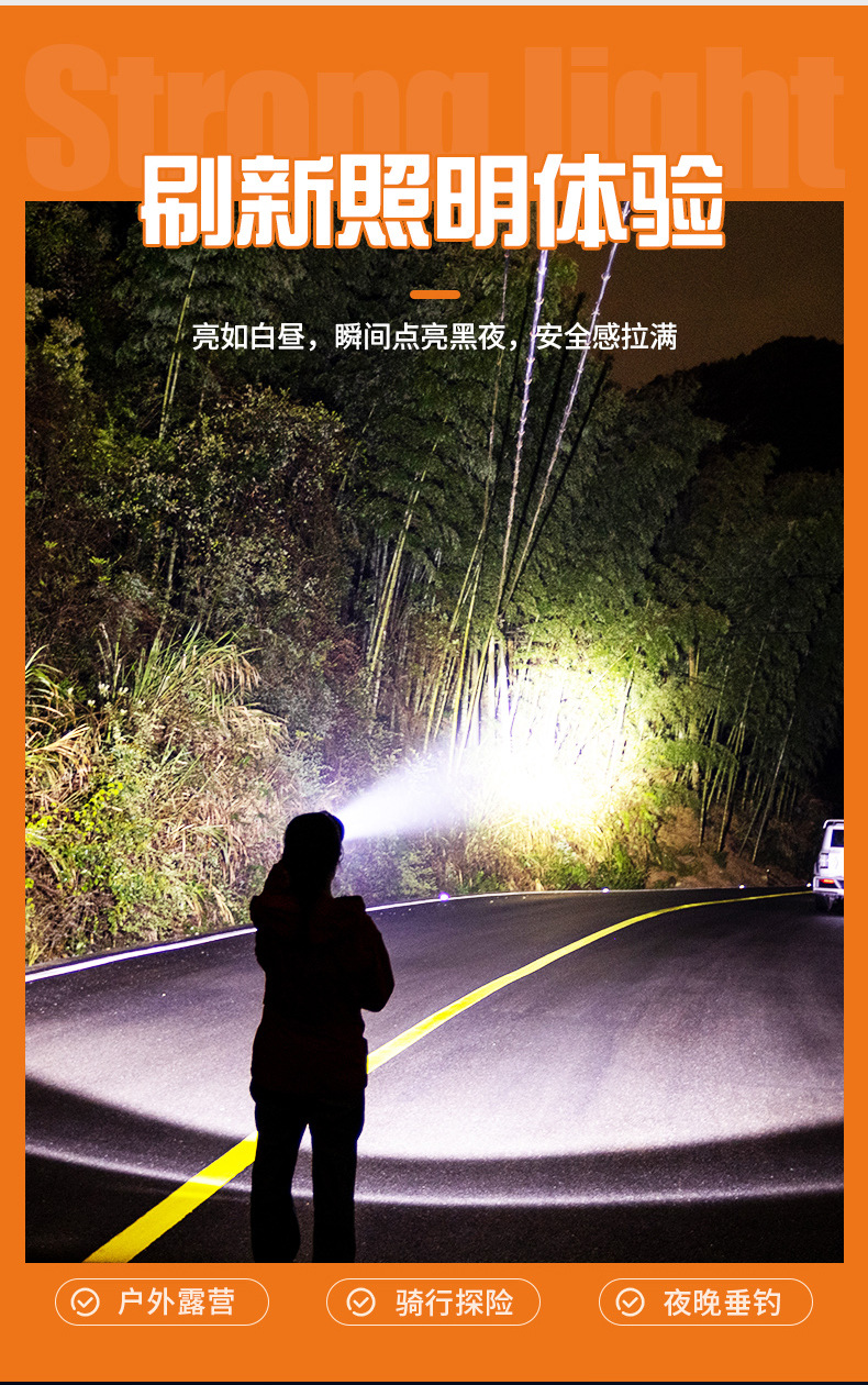 【产品特点】:双面旋转可用 一面LED远光+一面COB泛光 内置聚合物锂电池 液晶数字电显