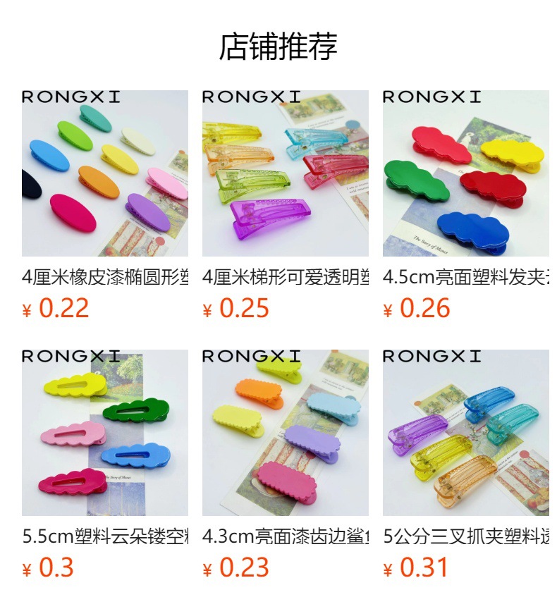 4cm 젤리 컬러 클립 한국 온라인 빨간 소녀 투명 플라스틱 클립 타원형 오리 클립 DIY 수제 재료 도매스토어 가기