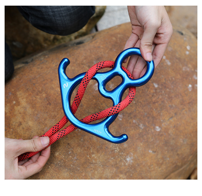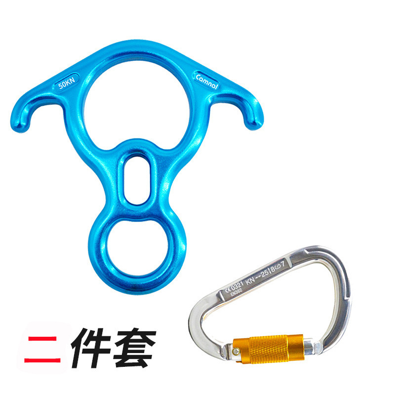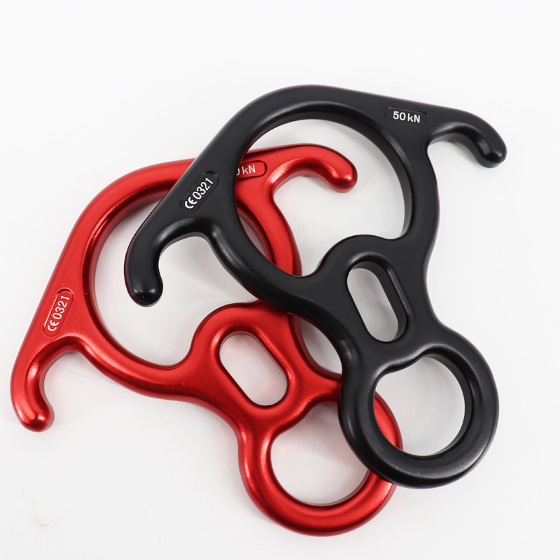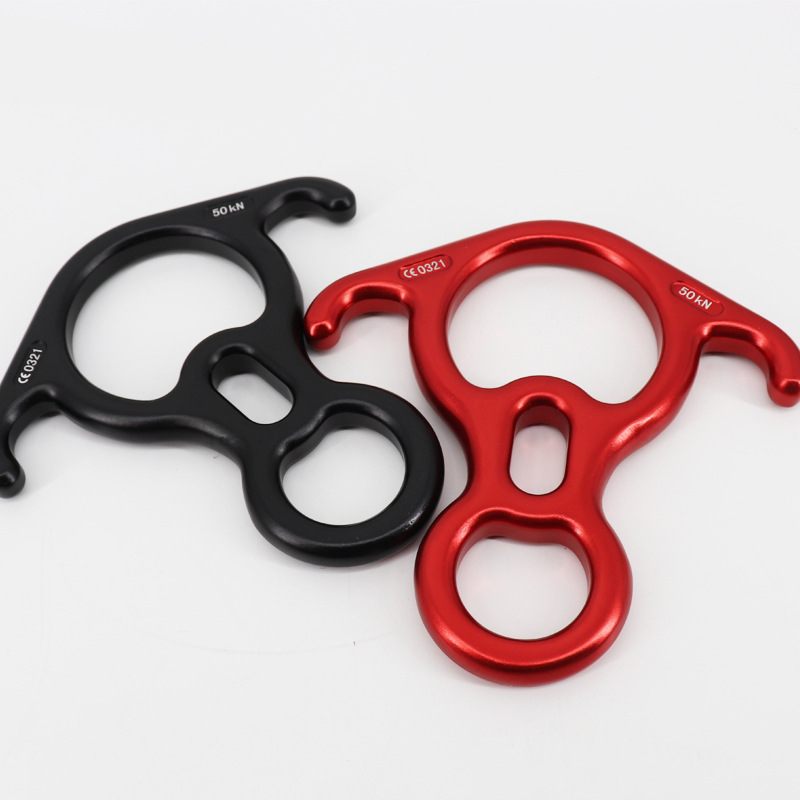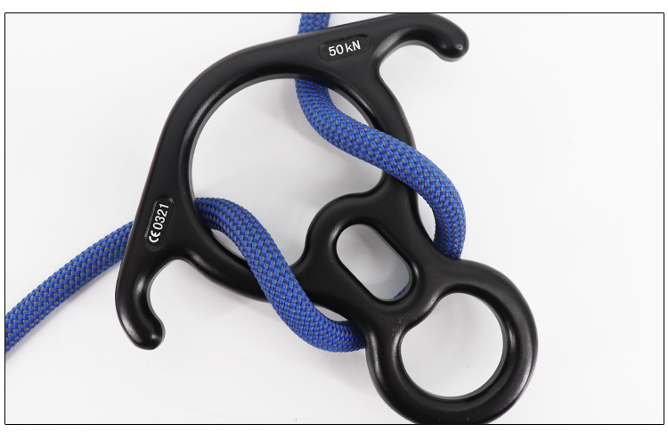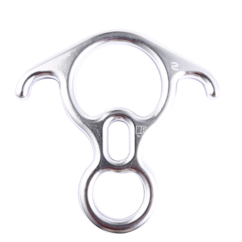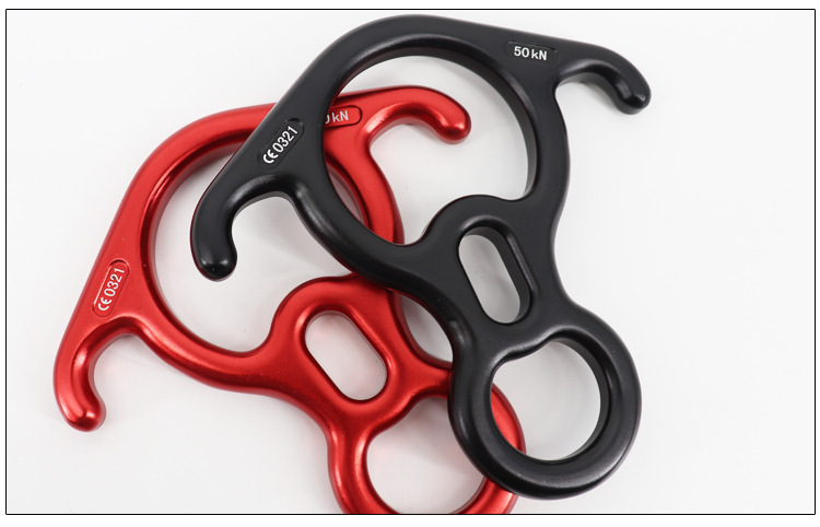 航空铝救援八字环下降器,具有下降过程中的打结悬停功能,牛角带耳8字环下降器,拉力:32KN。质量放心!