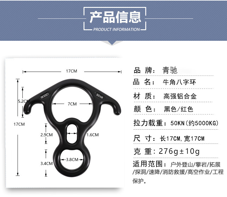 产品名称:牛耳 牛角八字环 下降器 缓降保护器 牛耳8字环 速降