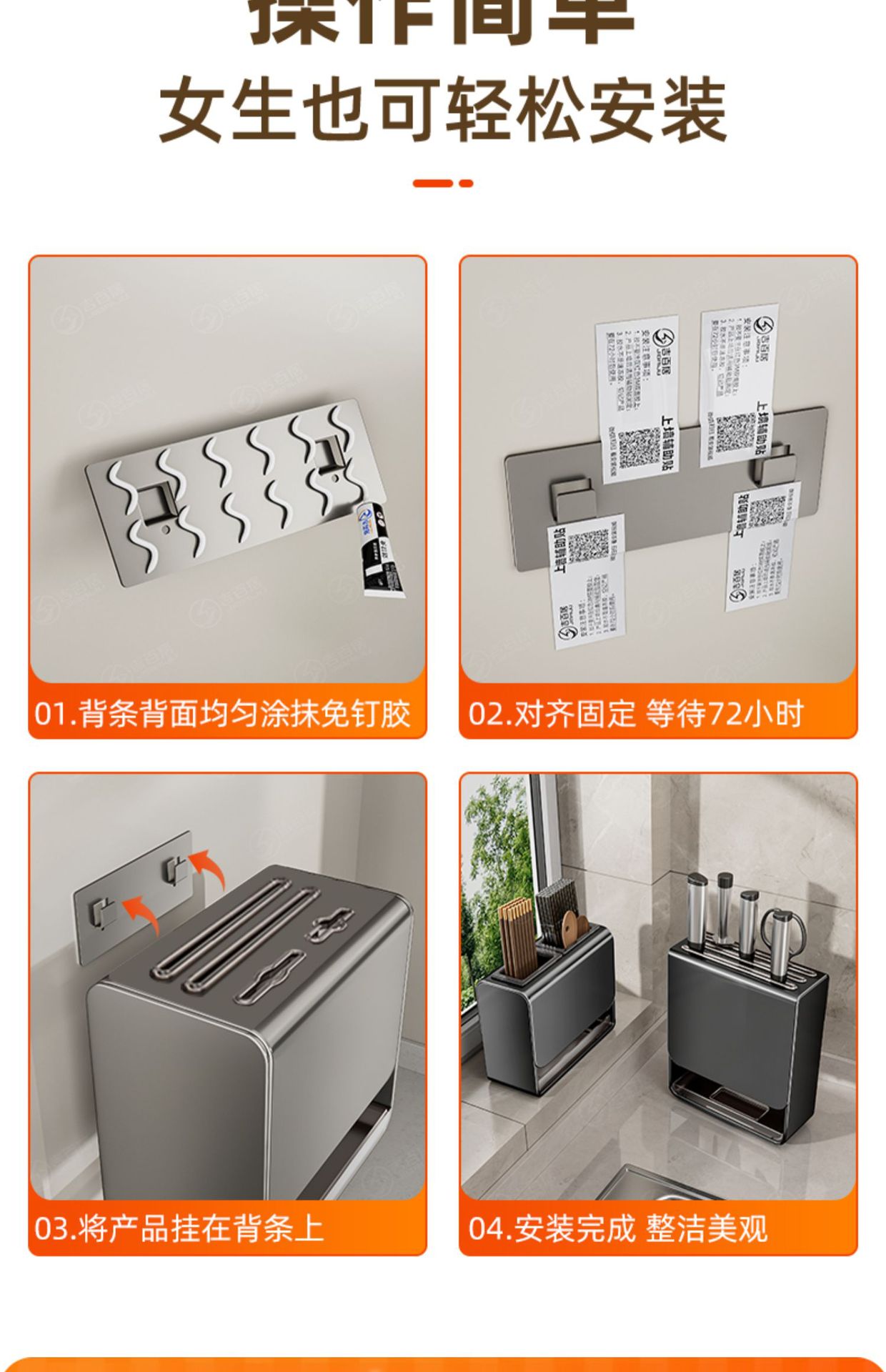 공장 공급 주방 나이프 랙 스토리지 랙 펀치없는 벽에 장착 된 카운터 탑 벽에 장착 된 나이프 주방 나이프 통합 랙스토어 가기