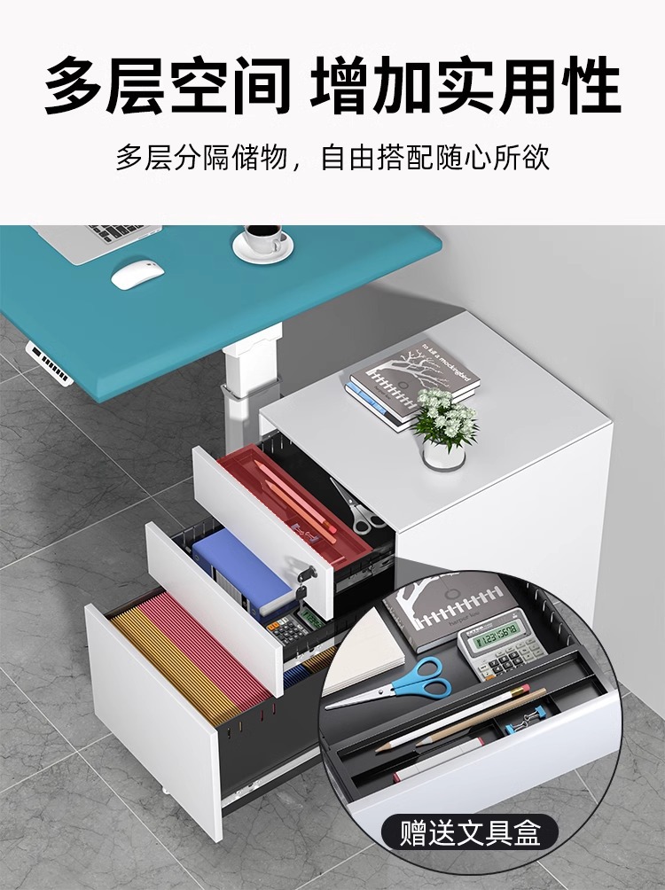 책상 아래 이동식 캐비닛, 바퀴 달린 3단 서랍형 낮은 캐비닛, 잠금장치가 있는 철제 수납 서랍장, 철제 파일 캐비닛