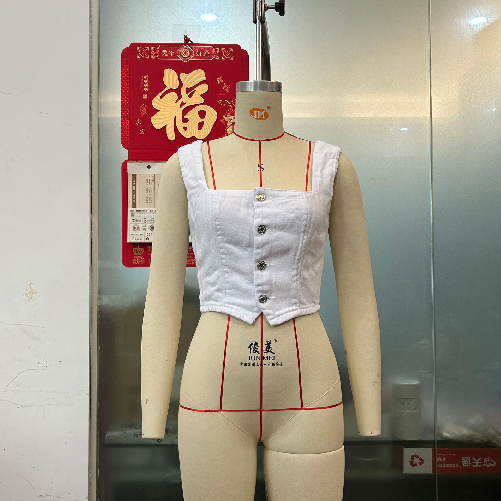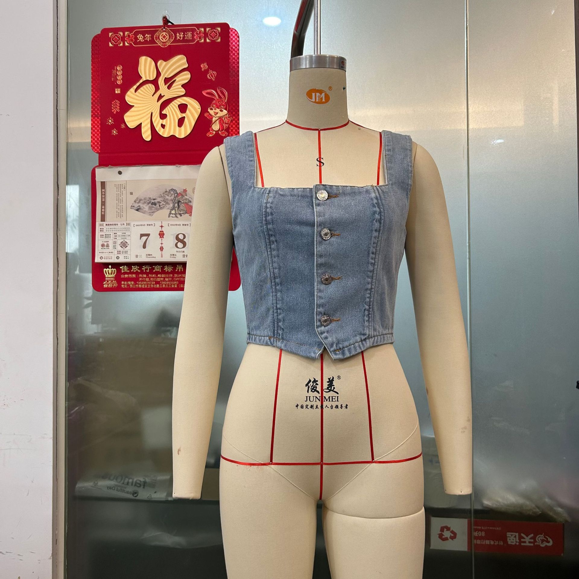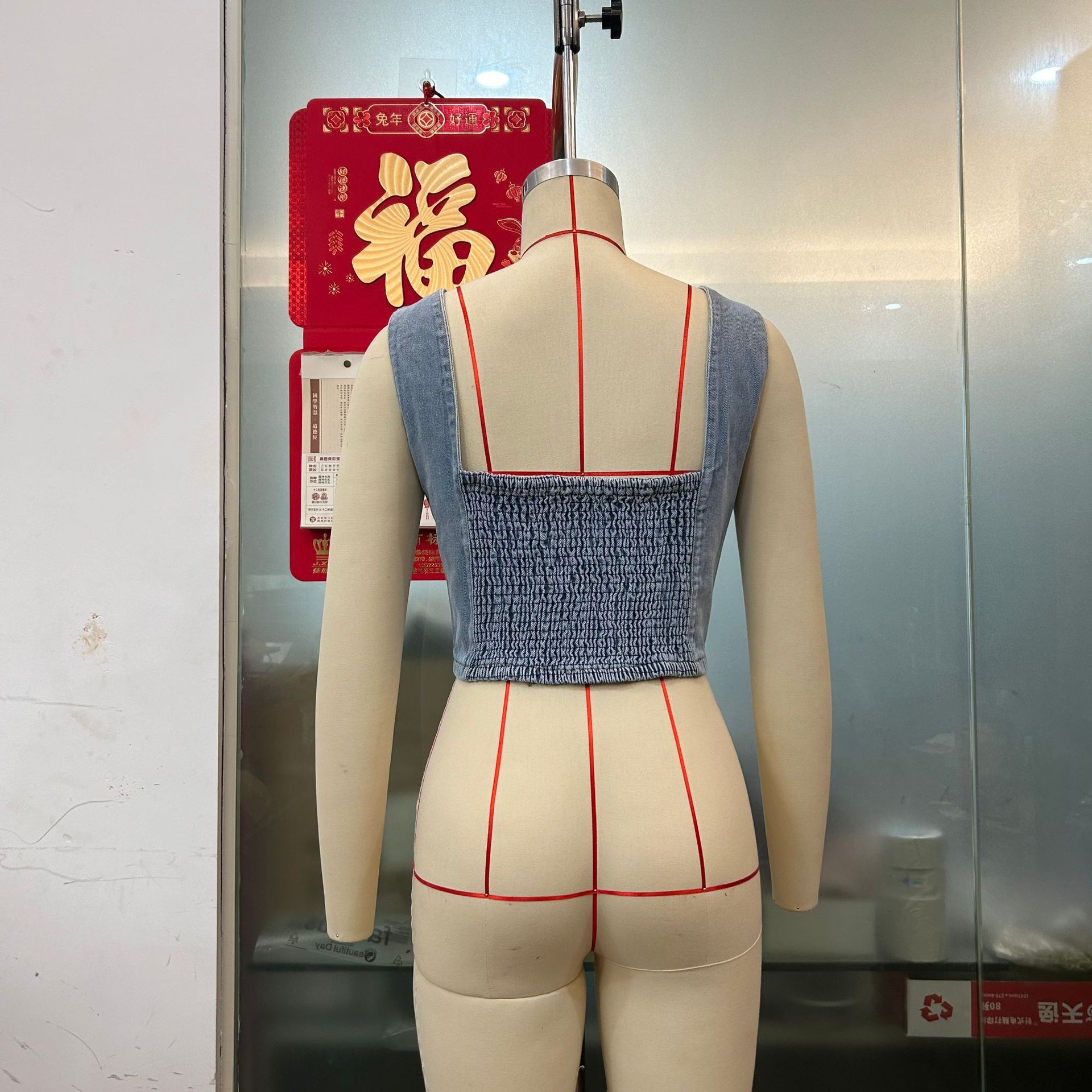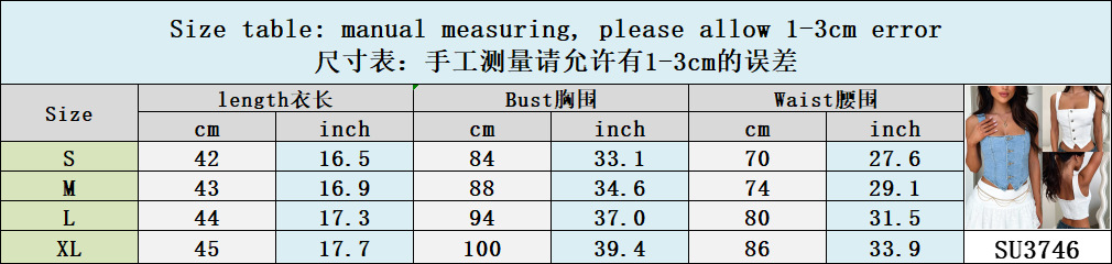유럽과 미국의 새로운 의류 데님 조끼 솔리드 컬러 브레스트 패션 서스펜더 짧은 탑 봄과 여름 뜨거운 판매 SU3746