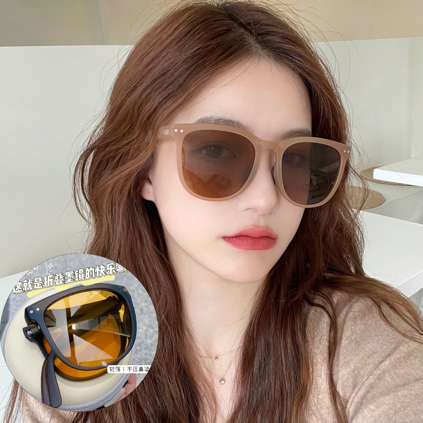 새로운 선글라스 소녀 태양 보호 새로운 스타일 다크 브라운 안경 인터넷 유명 인사 같은 스타일의 고급 I 패션 접는 선글라스