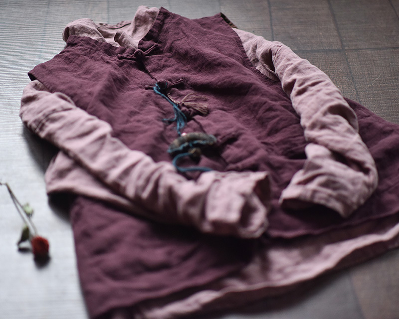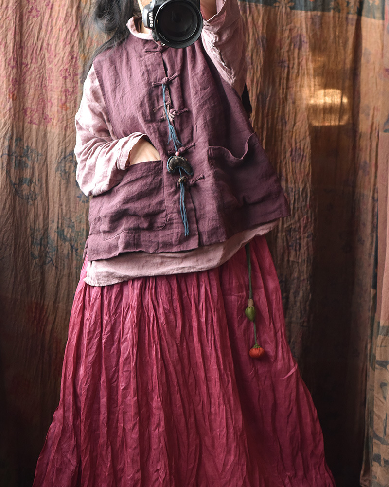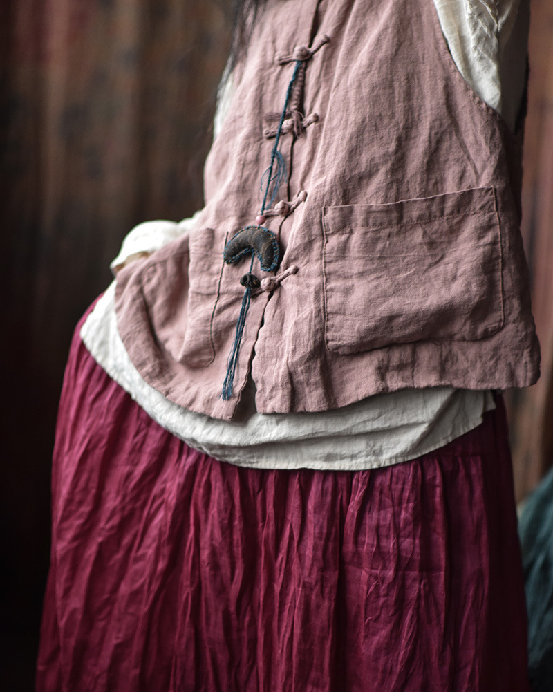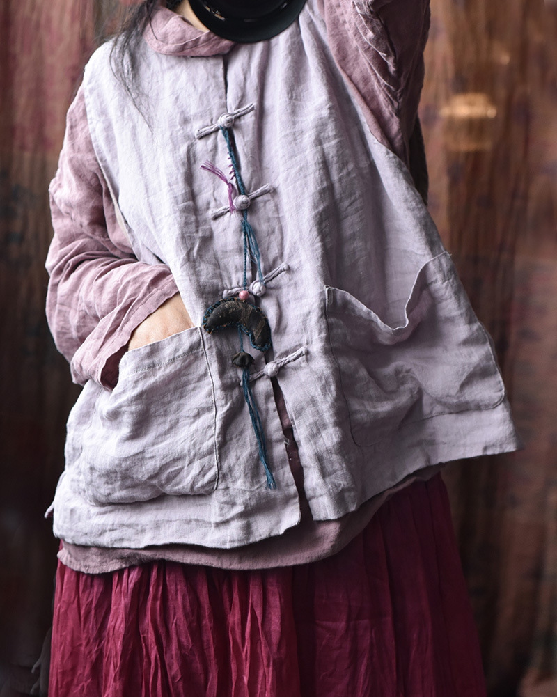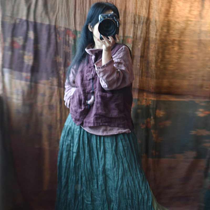 203 Four Seasons Double-layer Washed Old Linen Women's Vest with Vertical Collar and Buckle Ethnic Style Vintage Vest