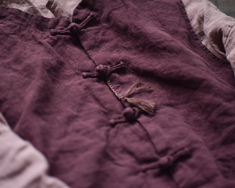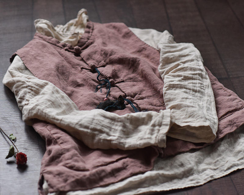 203 Four Seasons Double-layer Washed Old Linen Women's Vest with Vertical Collar and Buckle Ethnic Style Vintage Vest스토어 가기