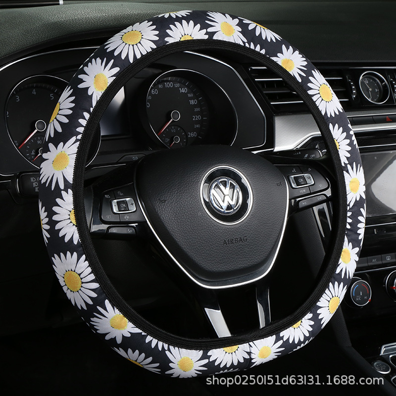 스티어링 휠 커버 데이지 프린트 사계절 유니버설 미끄럼 방지 땀 흡수 얼룩 방지 탄성 비 내부 링 자동차 핸들 커버