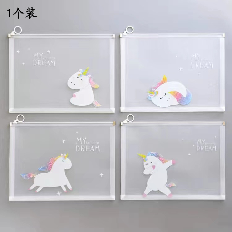 만화 A4 투명 파일 가방 가장자리 그리기 파일 가방 한국 신선한 중학교 정보 가방 플라스틱 테스트 종이 보관 가방