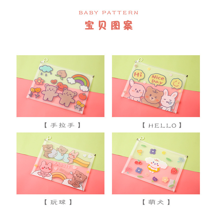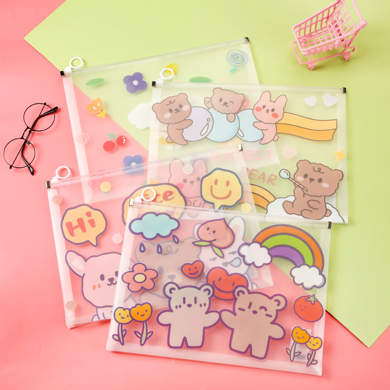 만화 A4 투명 파일 가방 가장자리 그리기 파일 가방 한국 신선한 중학교 정보 가방 플라스틱 테스트 종이 보관 가방스토어 가기