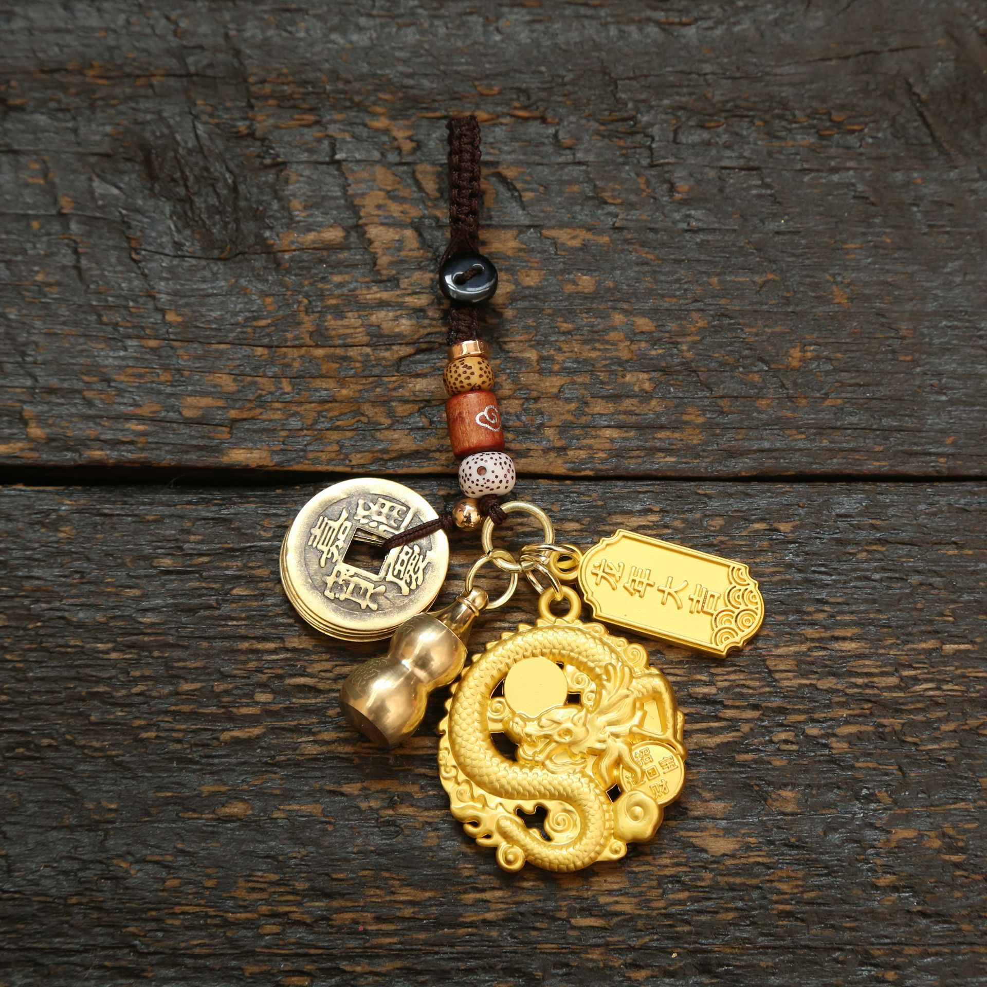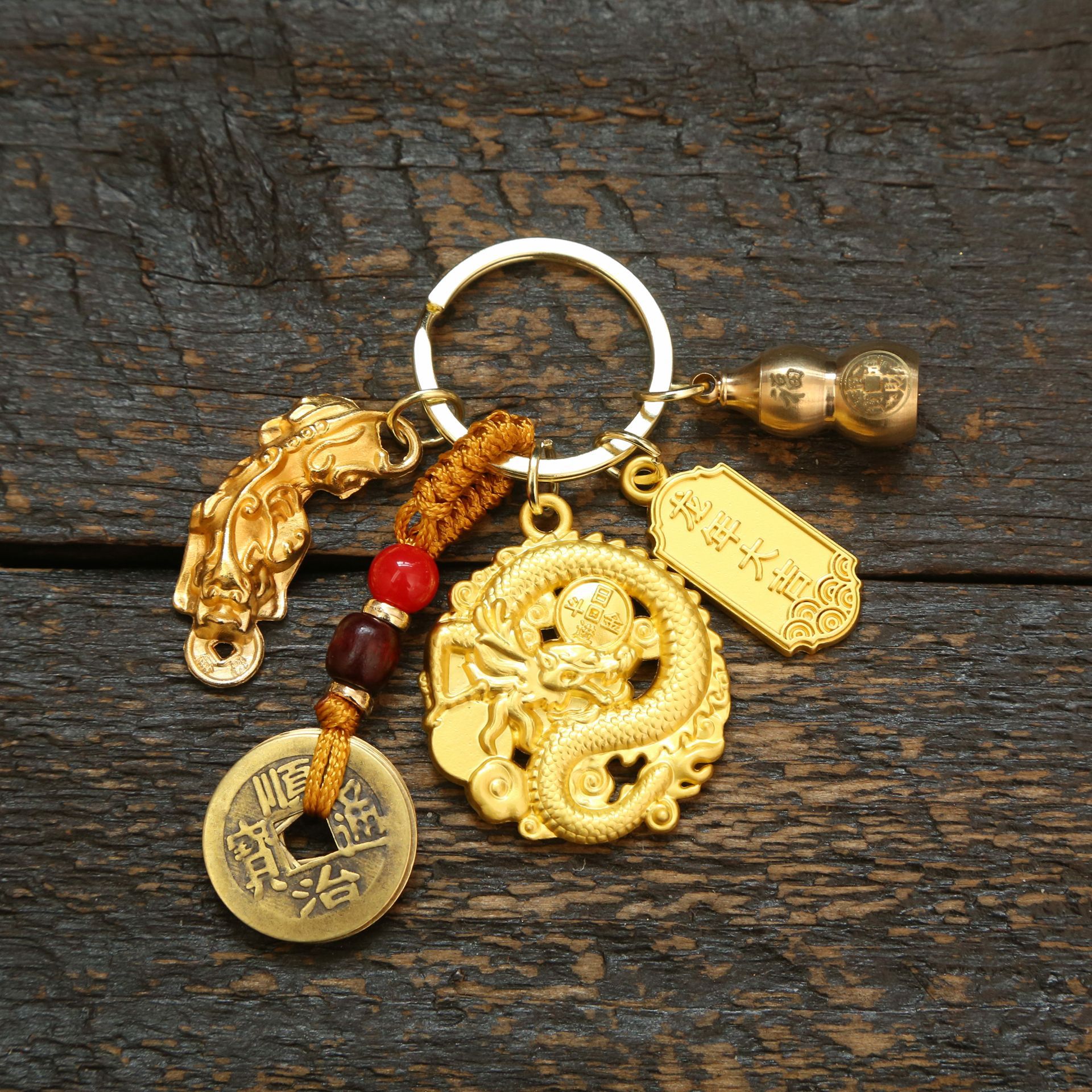 • 골든 라운드 드래곤 브랜드 + 옐로우 로프 5 명의 황제 돈 + 골든 구부러진 허리 (합금) + 골든 드래곤 년 럭키 브랜드 + 라운드 행운의 보물 조롱박 (모래 보내기)