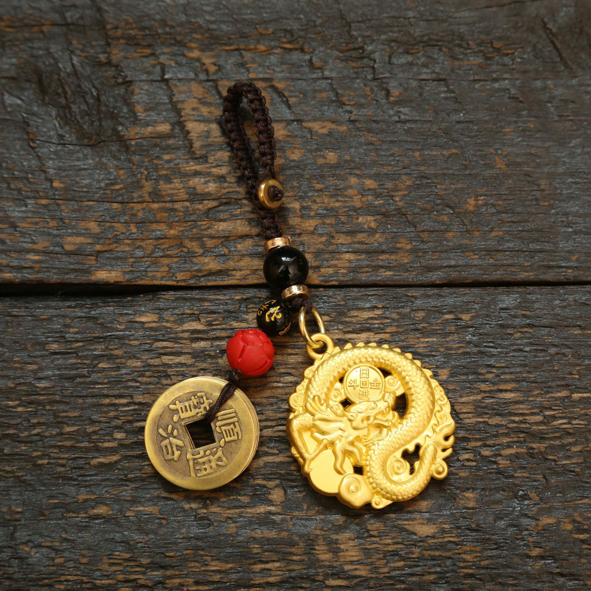 • 골든 라운드 드래곤 브랜드 + 블랙 레드 구슬 5 황제 돈