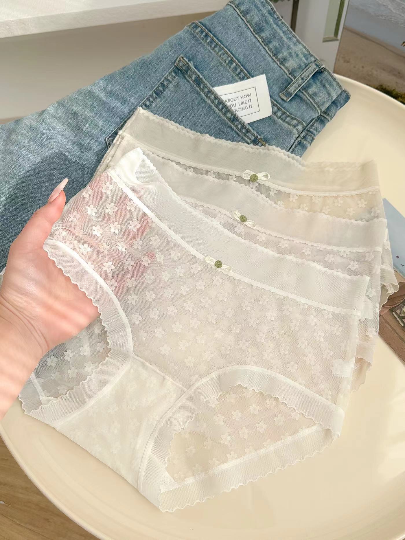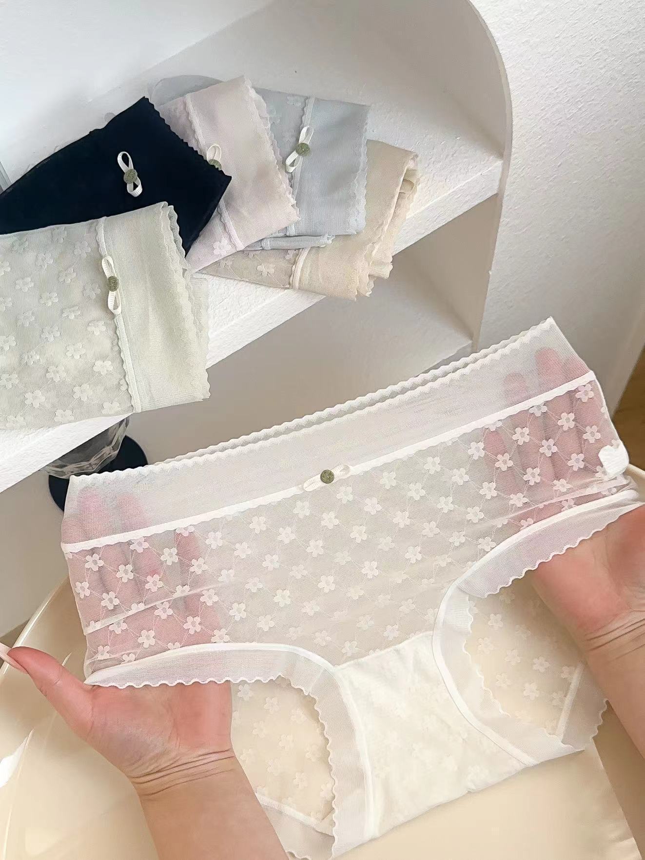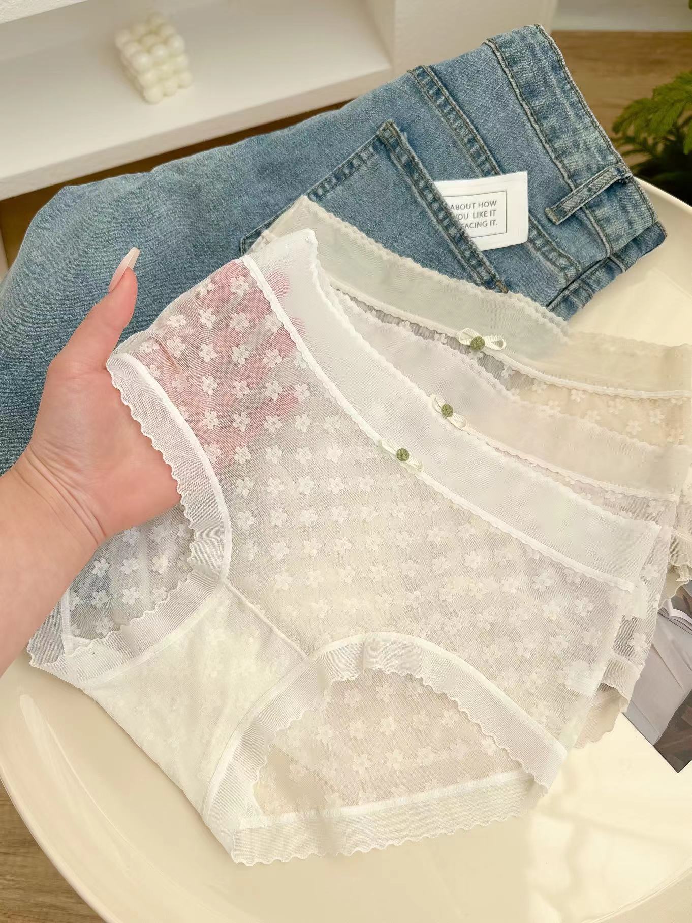 봄과 여름 얇은 섹시한 마이크로 통기성 칼집 라이트 원사 메쉬 레이스 부드러운면 가랑이 브리프 여성 2721
