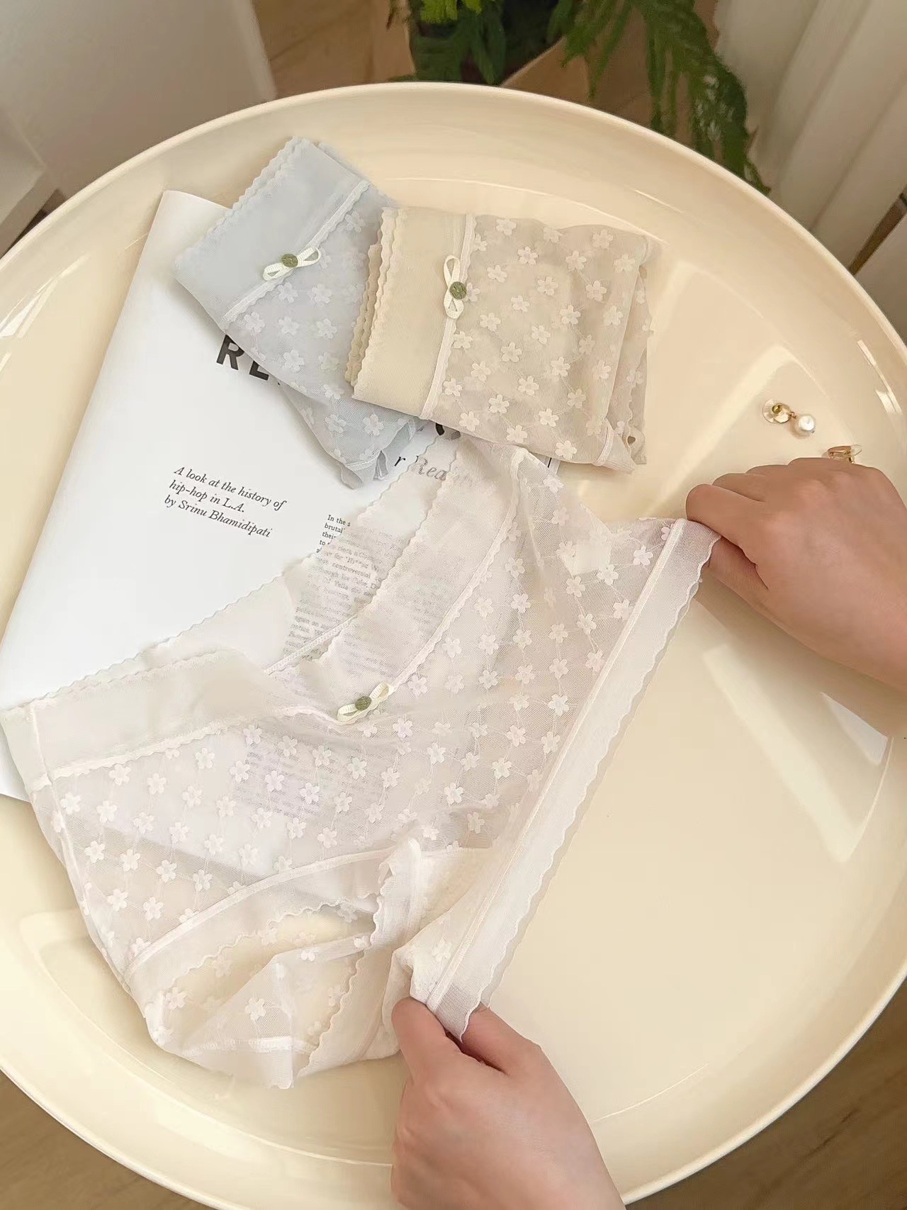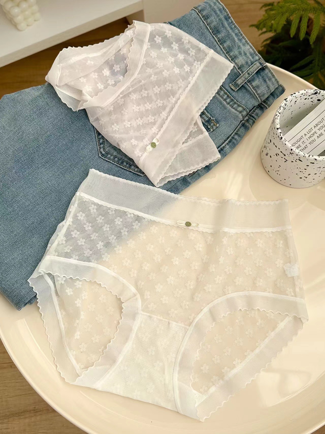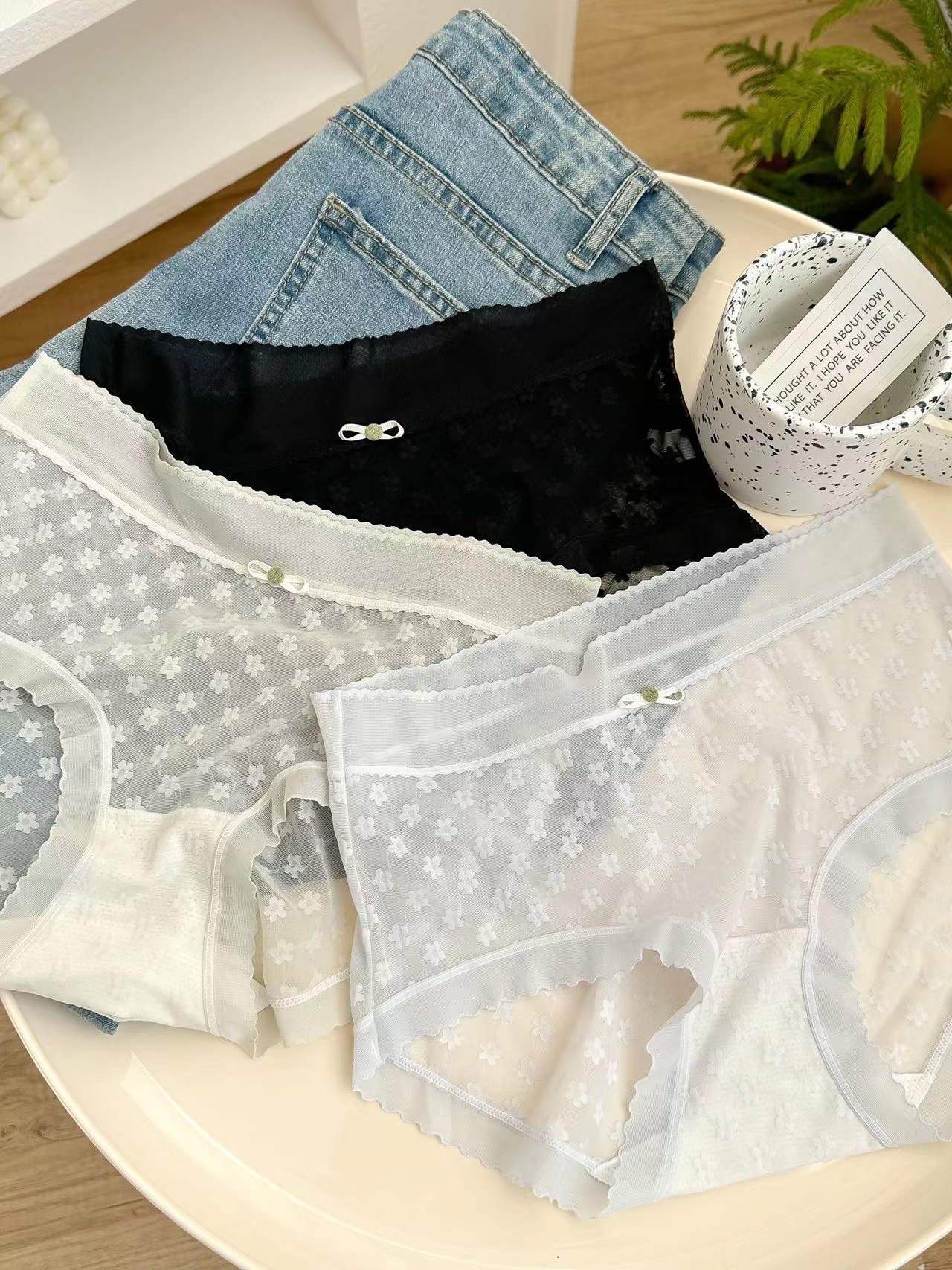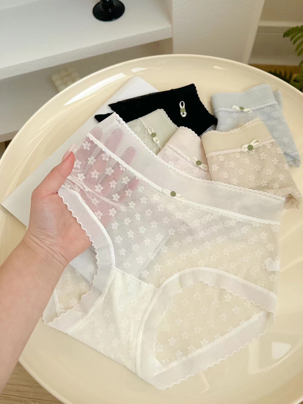 봄과 여름 얇은 섹시한 마이크로 통기성 칼집 라이트 원사 메쉬 레이스 부드러운면 가랑이 브리프 여성 2721