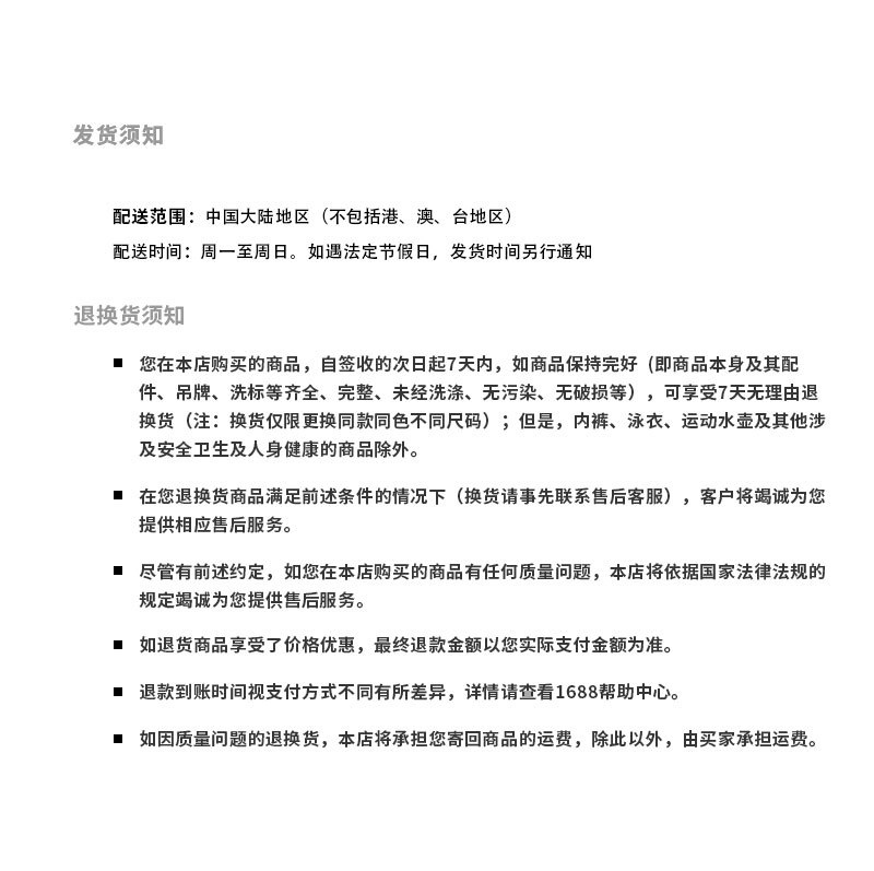 1688온라인 사이트에서 검색된 상품입니다. 알리타플에서는 상품검색/현지구매(구매대행)/국제배송 업무만 제공해드립니다. 해당 상품의 품질 및 상태에 대해서는 확인해 드릴 수 없고 해당 물건이 입고가 된 후에 검수과정을 거쳐야 확인이 가능합니다.