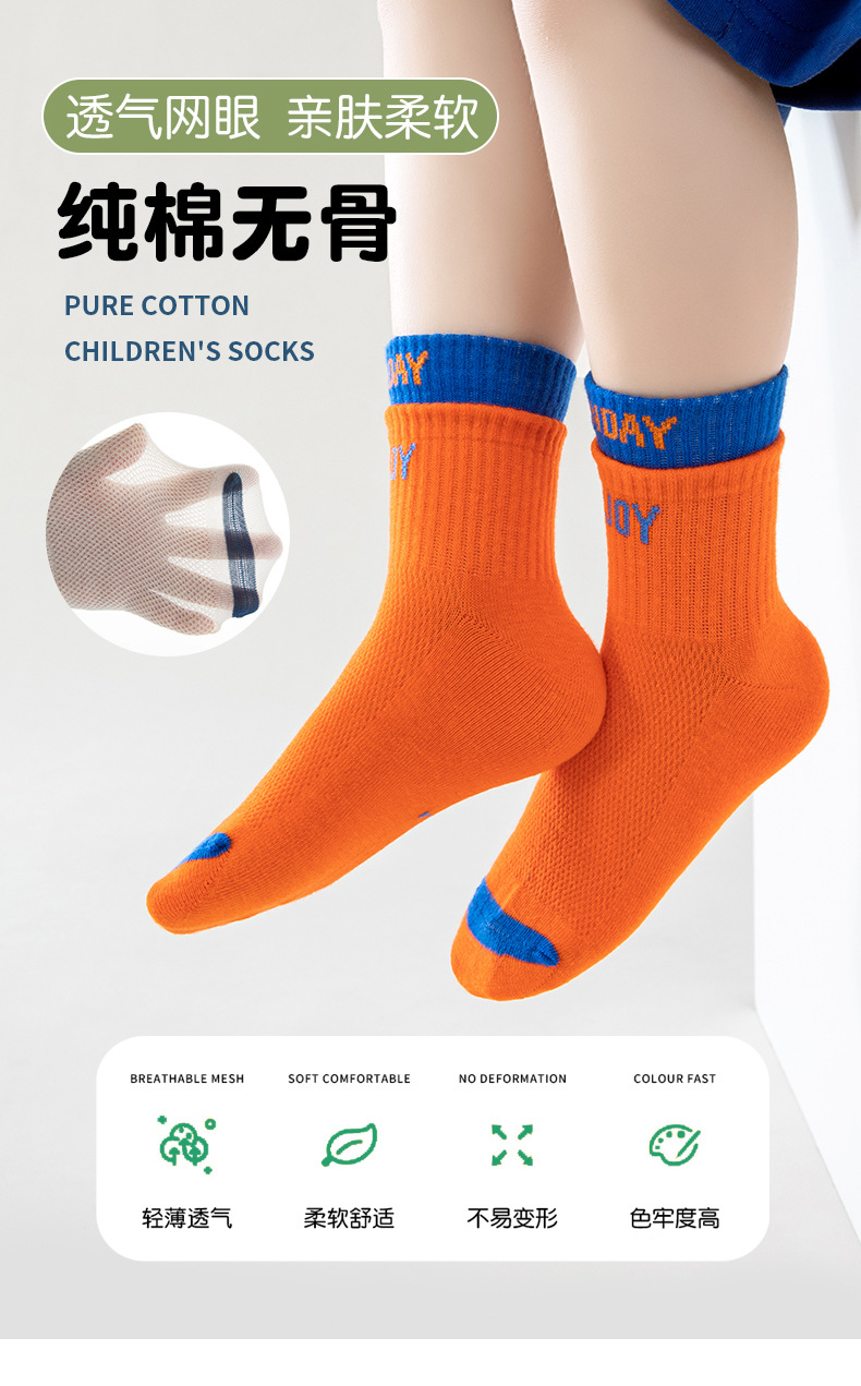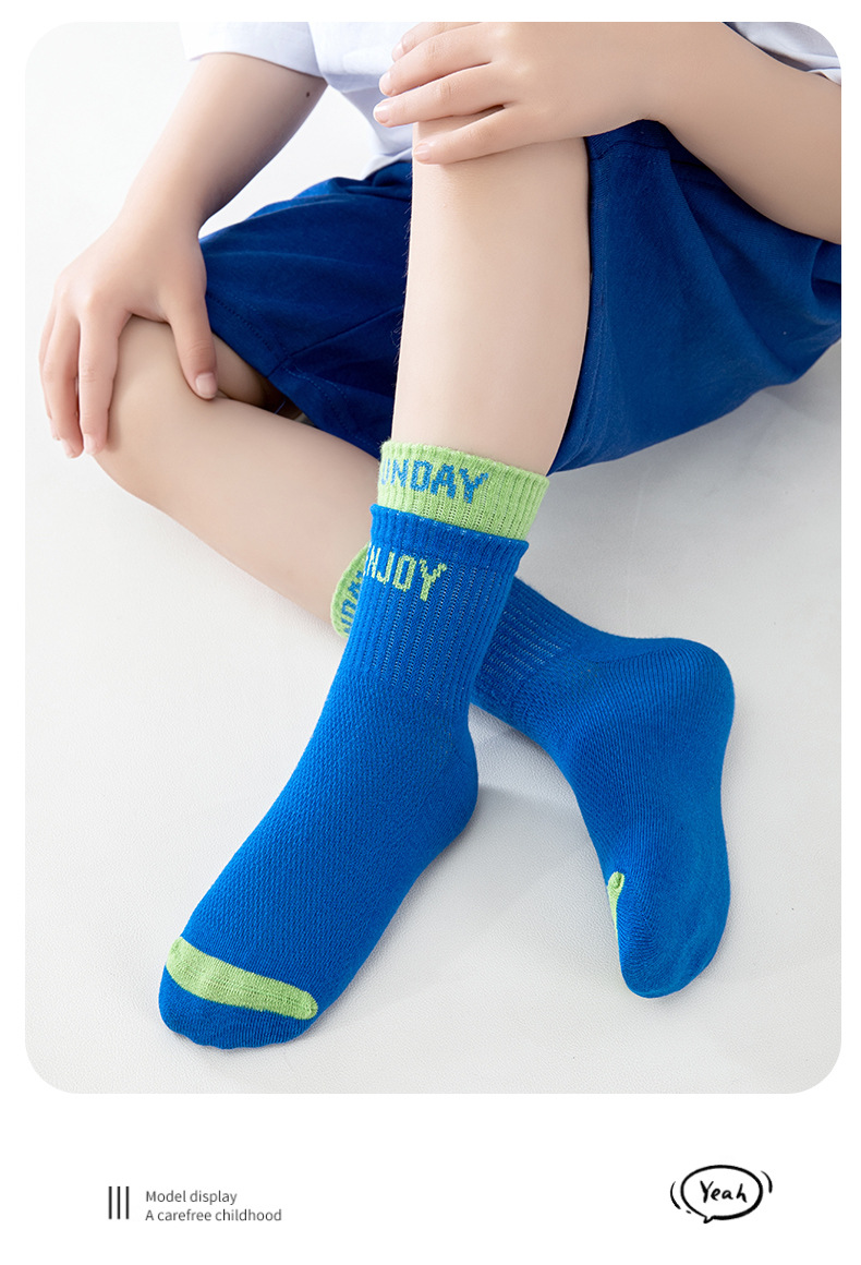봄과 여름 얇은 빗질 코튼 통기성 땀 흡수성 안티 필링 트렌디 한 스포츠 소년 양말 뼈없는 어린이 메쉬 양말스토어 가기
